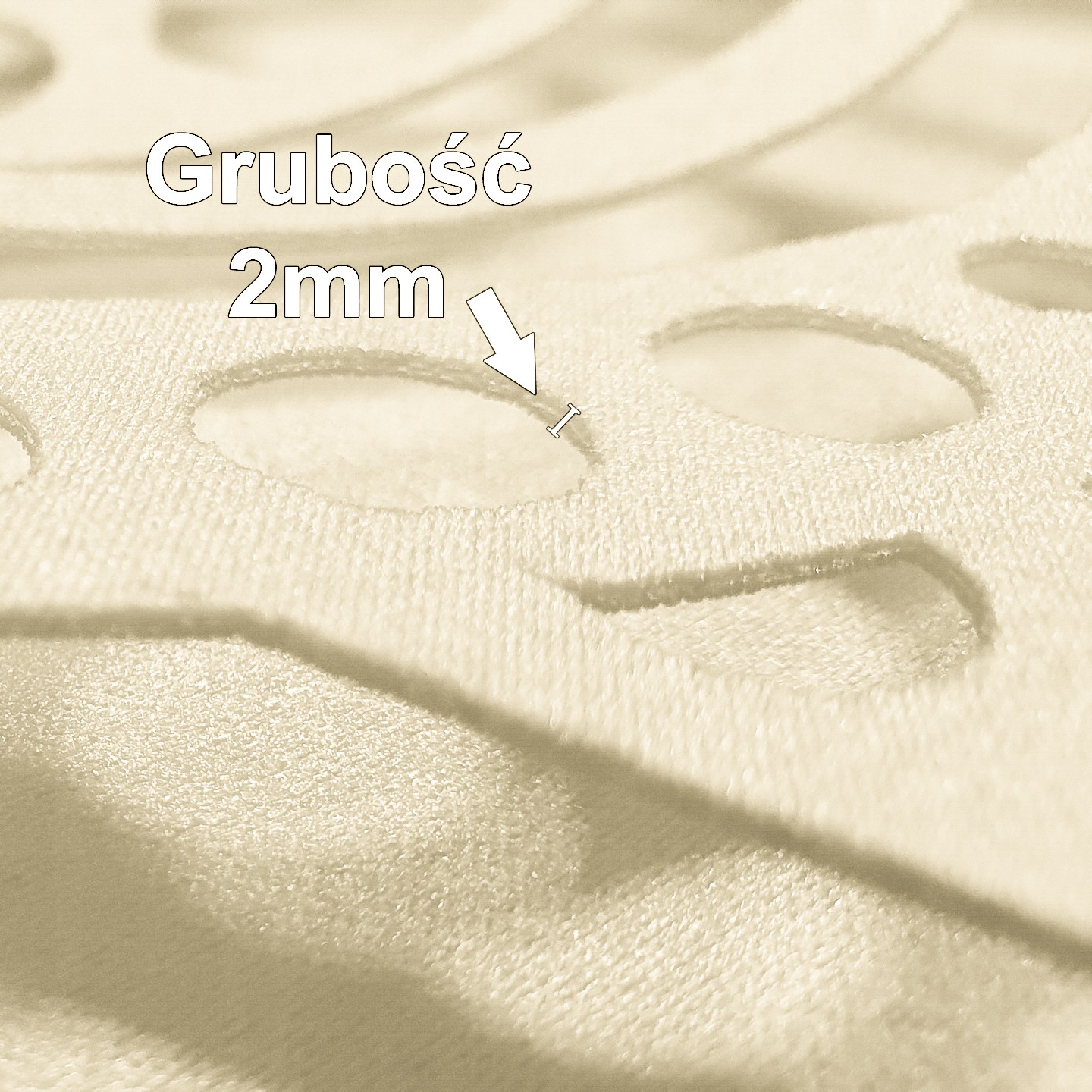 Ażury wykonane są metodą laserową ze sklejonej podwójnie tkaniny, usztywnionej od środka.
