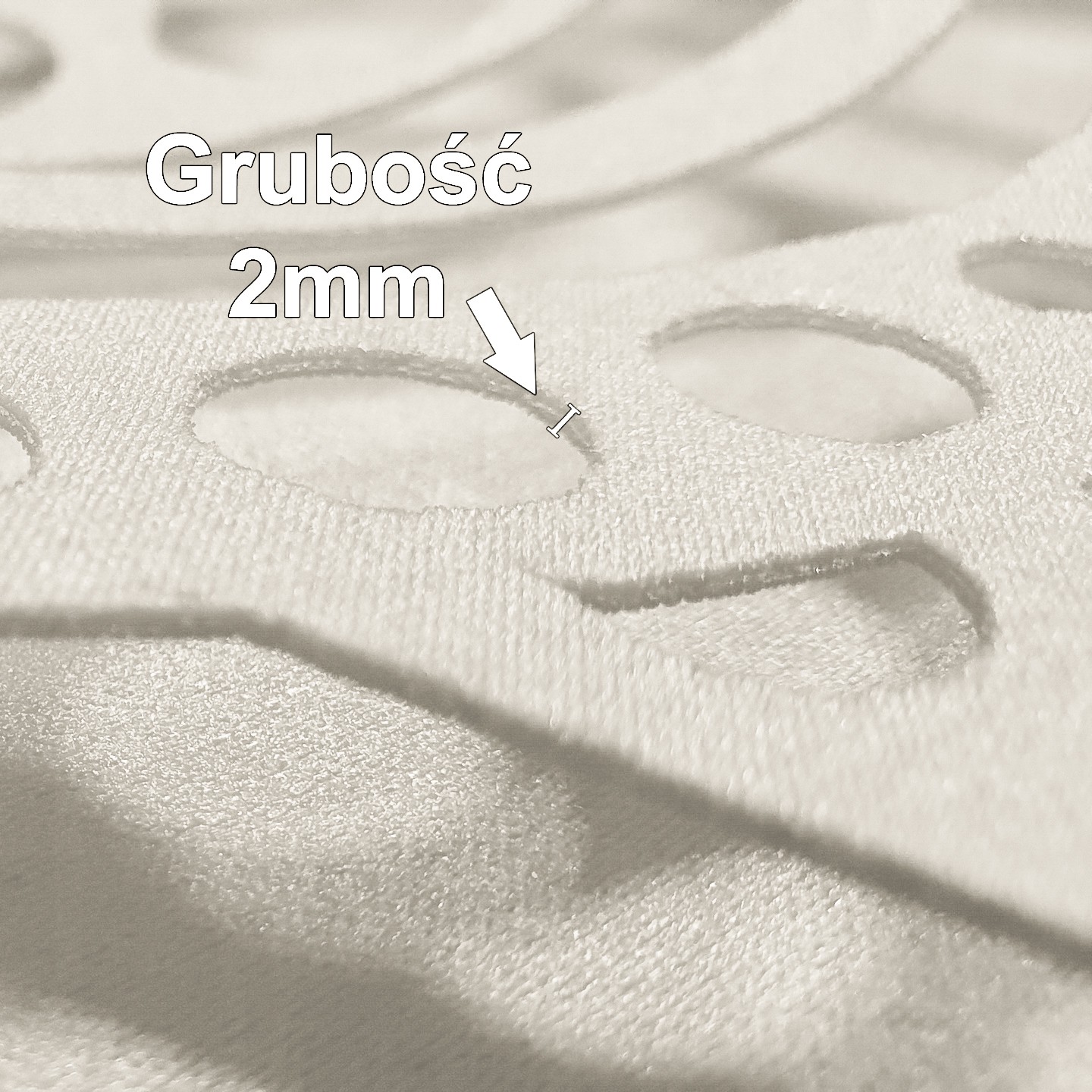 Ażury wykonane są metodą laserową ze sklejonej podwójnie tkaniny, usztywnionej od środka.