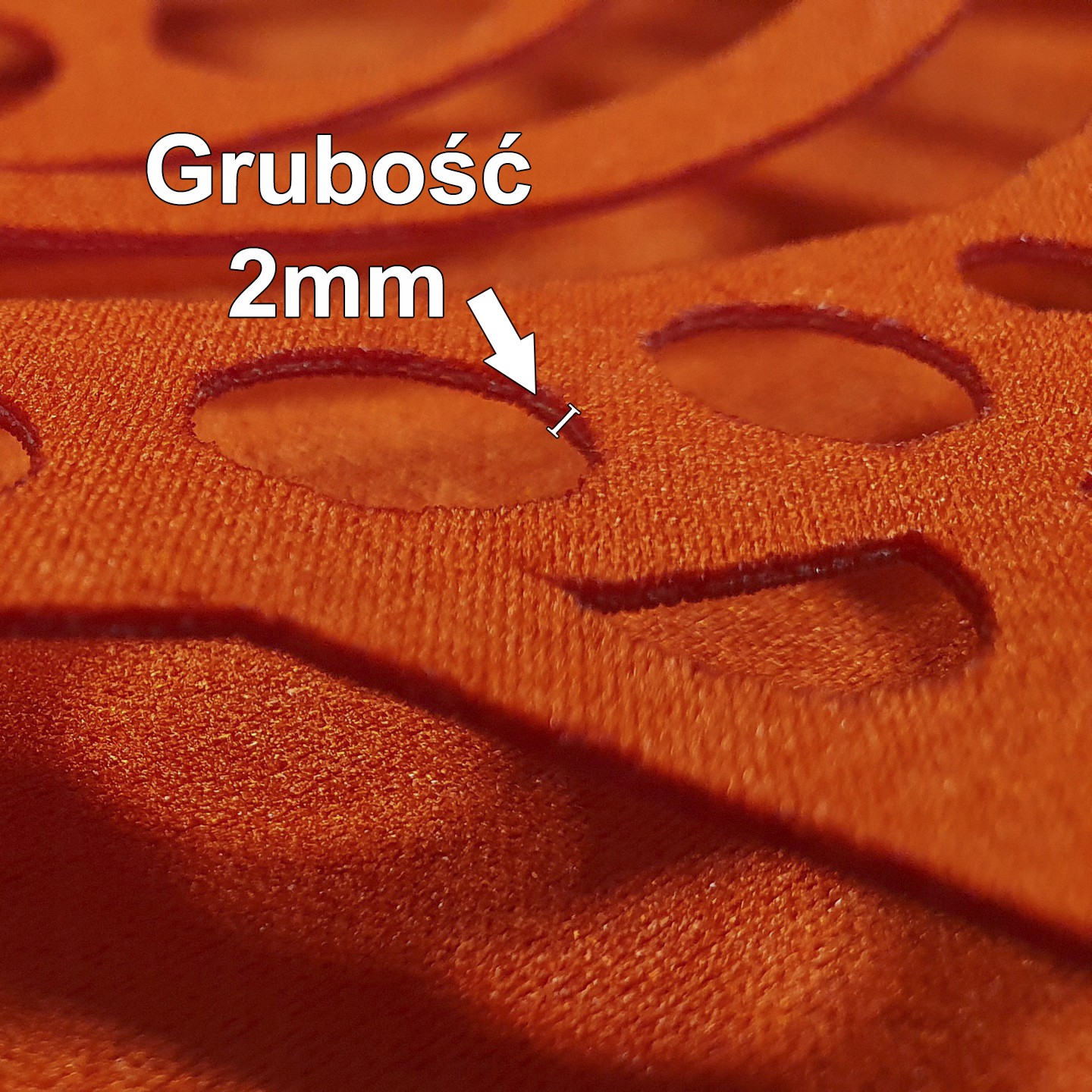 Ażury wykonane są metodą laserową ze sklejonej podwójnie tkaniny, usztywnionej od środka.