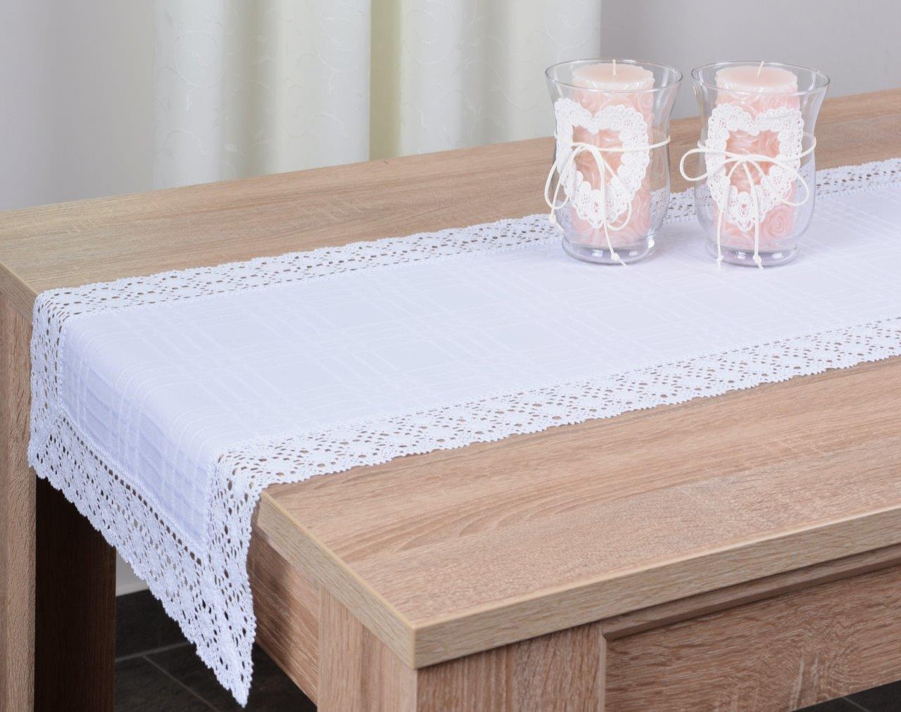 Bieżnik bawełniany z koronką- Biały