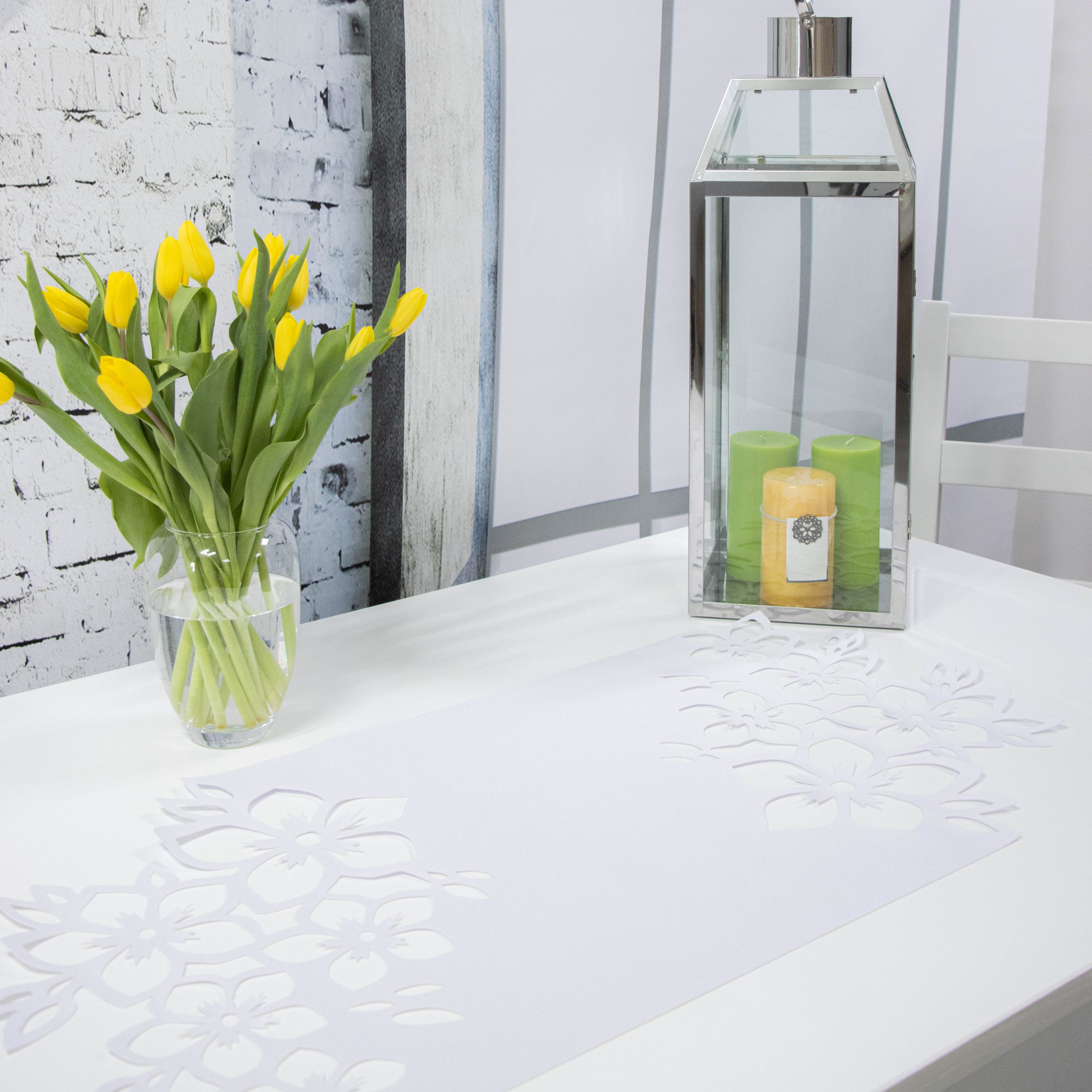 Bieżnik Dekor – wykonany jest z dwóch warstw wysokogatunkowej tkaniny poliestrowej. Zdobi go piękny wzór wycinany metodą laserową.