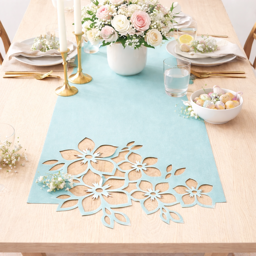 Bieżnik Dekor – wykonany jest z dwóch warstw wysokogatunkowej tkaniny poliestrowej. Zdobi go piękny wzór wycinany metodą laserową.