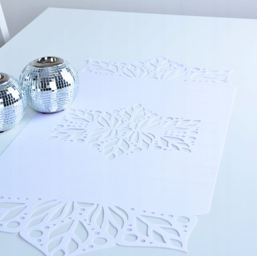 Bieżnik Dekor – wykonany jest z dwóch warstw wysokogatunkowej tkaniny poliestrowej. Zdobi go piękny wzór wycinany metodą laserową.