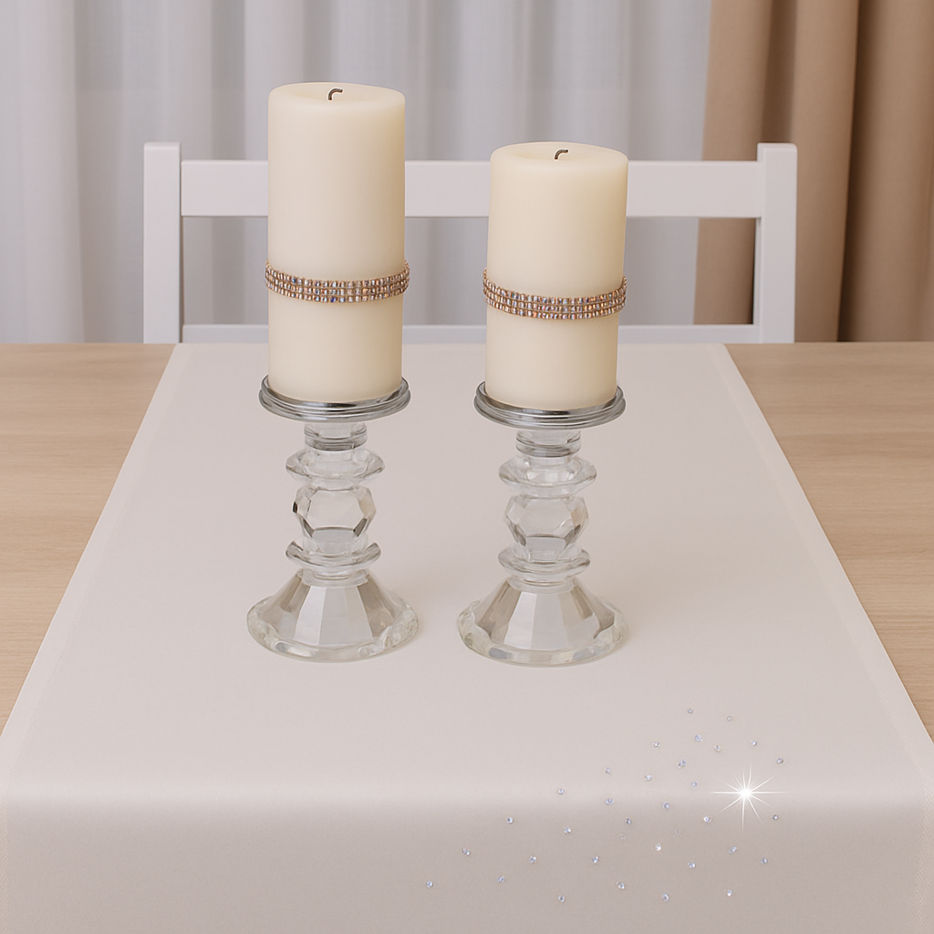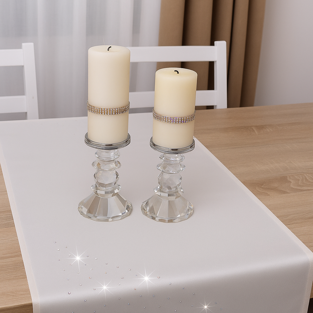 KRYSTAL to wyjątkowa kolekcja atłasowych bieżników, które wykończone są estetycznym podłożeniem na 1 cm oraz ozdobione są nowoczesnym wzorem, wykonanym ze szklanych kryształków, odpowiednio dobranych kolorystycznie. Bieżniki dostępne są w wielu kolorach oraz rozmiarach, dlatego dopasowanie nie będzie stanowiło problemu.