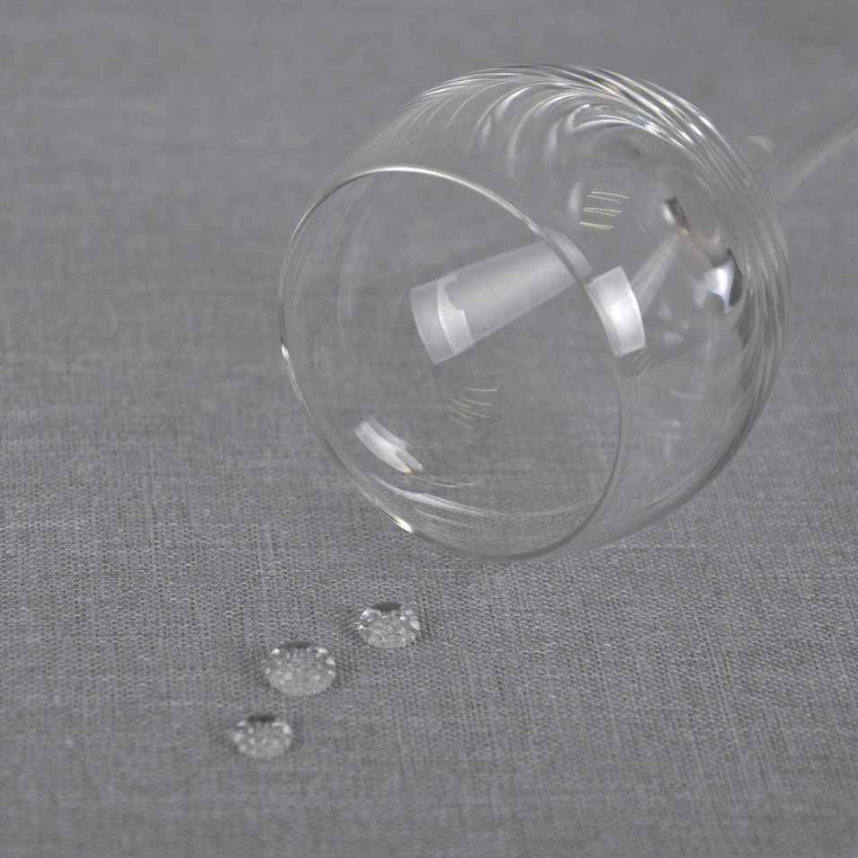 Tkanina pokryta jest powłoką plamoodporną, co zabezpiecza przed wchłanianiem płynów i chroni przed zabrudzeniami.