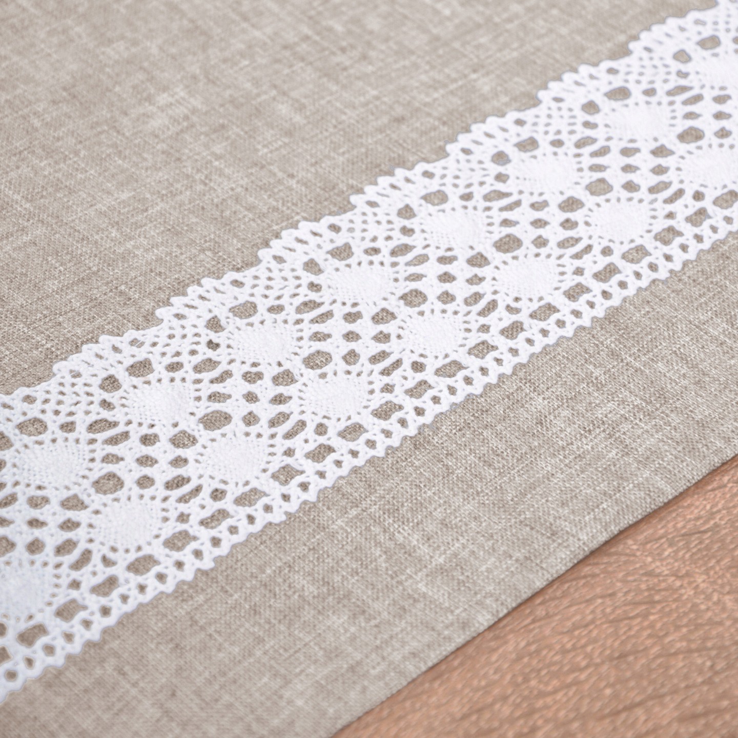SEWILLA to wyjątkowa kolekcja matowych bieżników wykończonych wokół ozdobną listwą o szerokości 5 cm z dodatkowym zdobieniem w postaci 7cm koronki bawełnianej. Dekoracyjna koronka nadaje bieżnikom eleganckiego szyku oraz wyjątkowego wyglądu. Bieżniki nadają wyjątkowego charakteru wnętrzom zarówno modernistycznym, skandynawskim, jak i klasycznym. Doskonale pasują do większości salonów, jadalni, ale sprawdzą się również w ogrodzie podczas grilla, na tarasie, czy podczas innych ważnych uroczystości. Ich szykowny wygląd idealnie komponuje się z kontrastującymi dodatkami takimi jak świeczniki, zastawa stołowa czy sztućce.