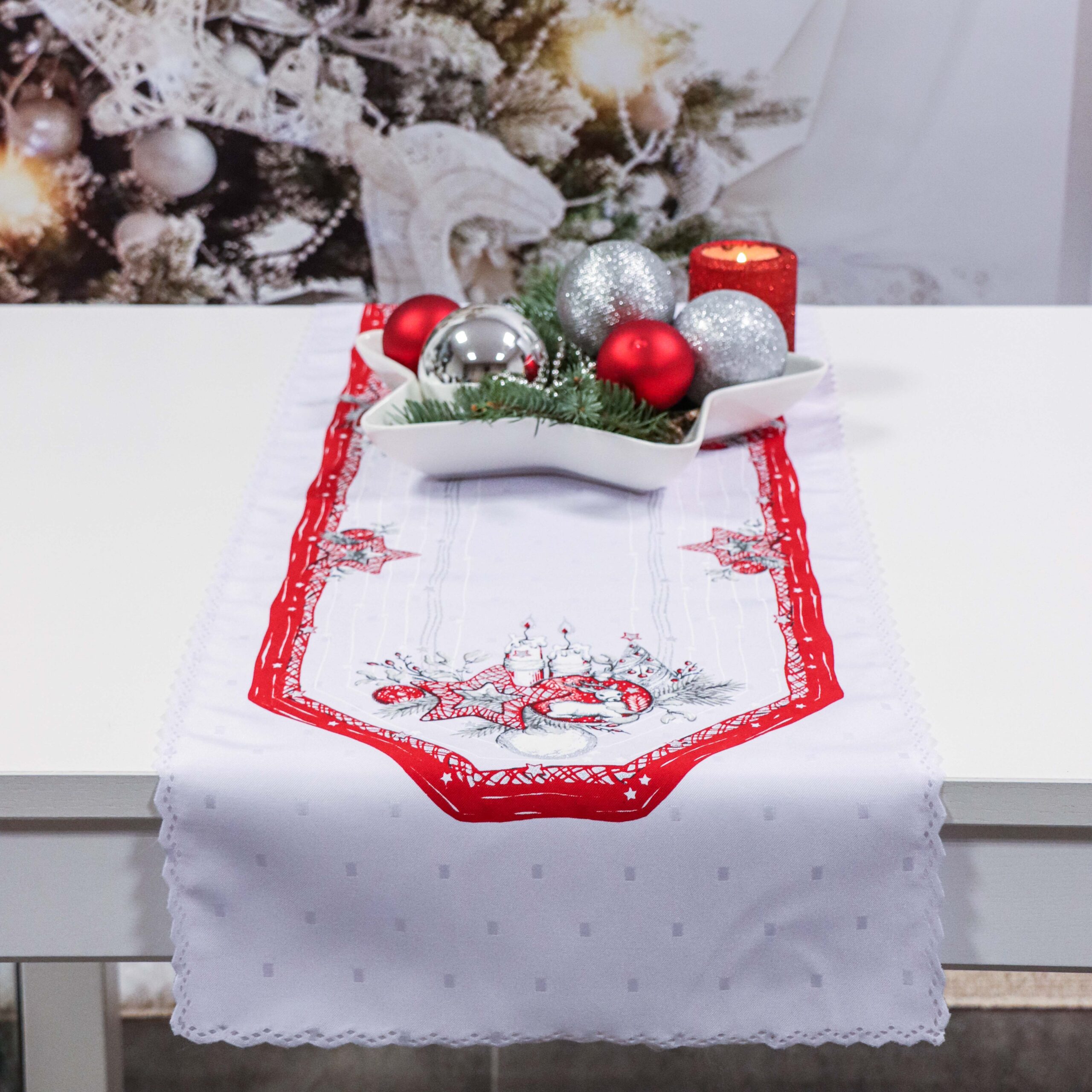 Bieżnik Świąteczny Boże Narodzenie- Biały