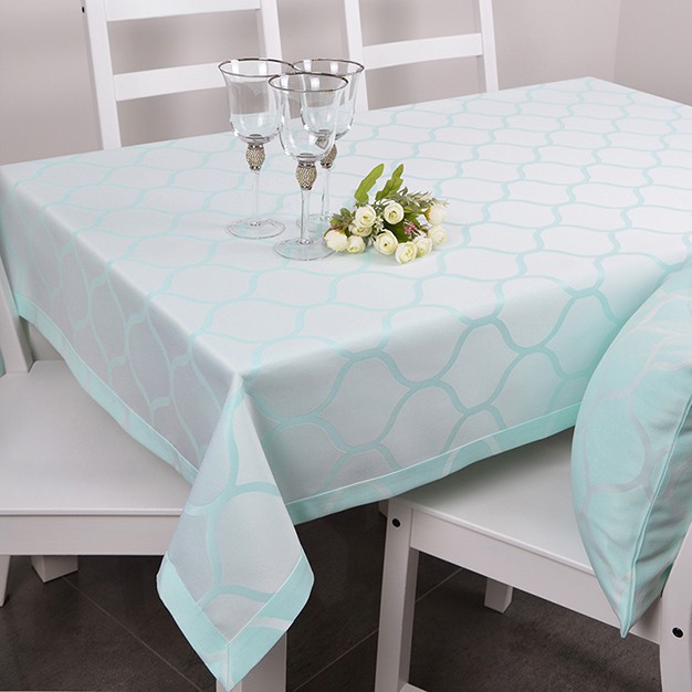 CASABLANCA – Obrus z kolekcji Casablanca to wyjątkowa dekoracja dla twojego wnętrza. Wykonany z żakardowej tkaniny, wykończonej elegancką listwą o szerokości 3 cm, doskonale prezentuje się po jednej jak i po drugiej stronie. Nadaje bardzo oryginalny wygląd, który komponuje się z kontrastującymi dodatkami takimi jak zastawa stołowa, sztućce czy świeczniki. Jest łatwy w utrzymaniu, kolory nie tracą swojej barwy, a więc obrus zachowuje swoje walory przez długi czas użytkowania.