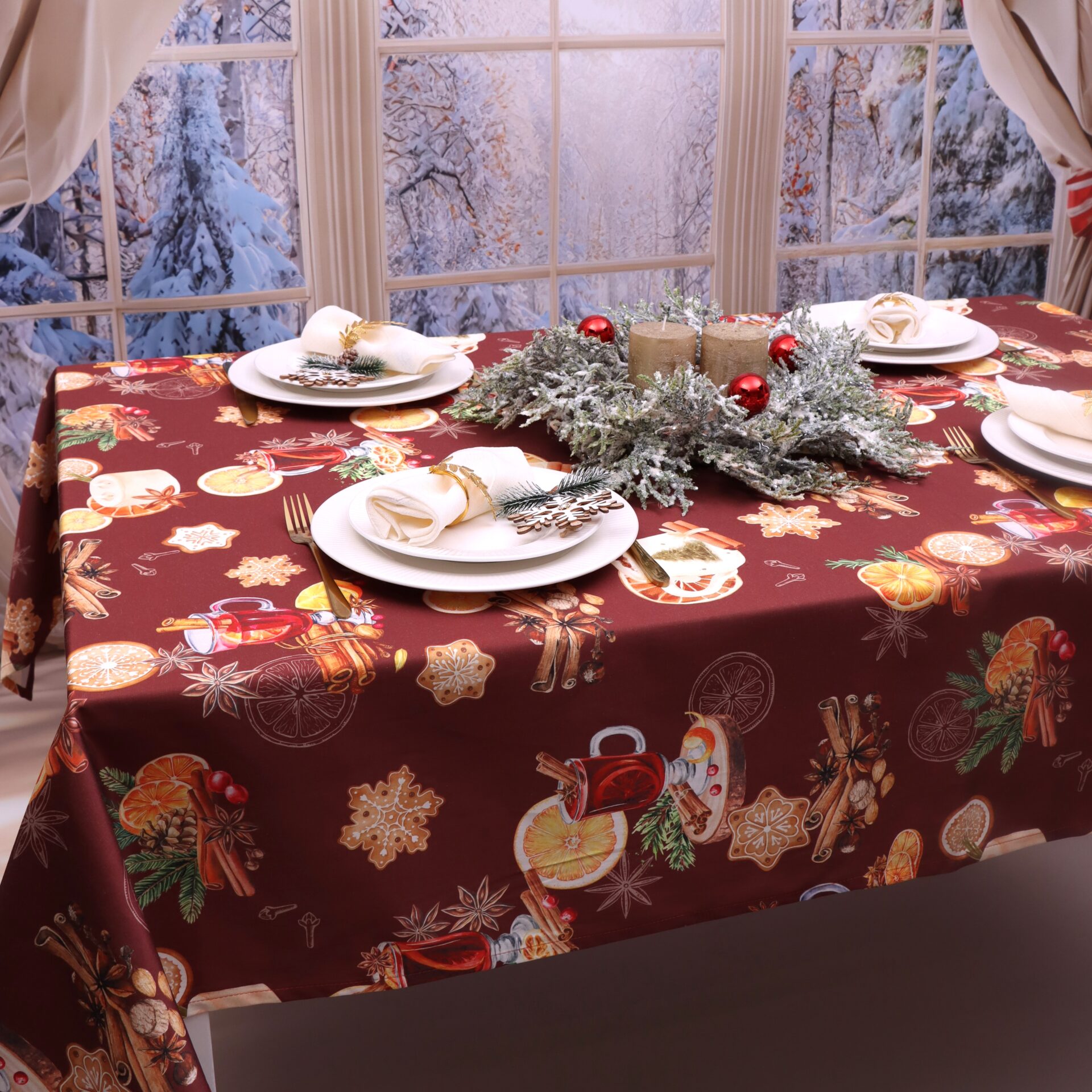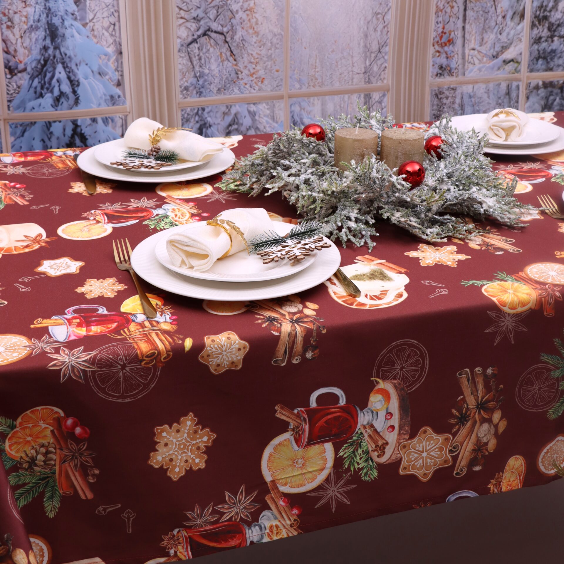 Odmień wygląd swojego stołu i wnętrza, dzięki naszej bogatej kolekcji obrusów świątecznych.