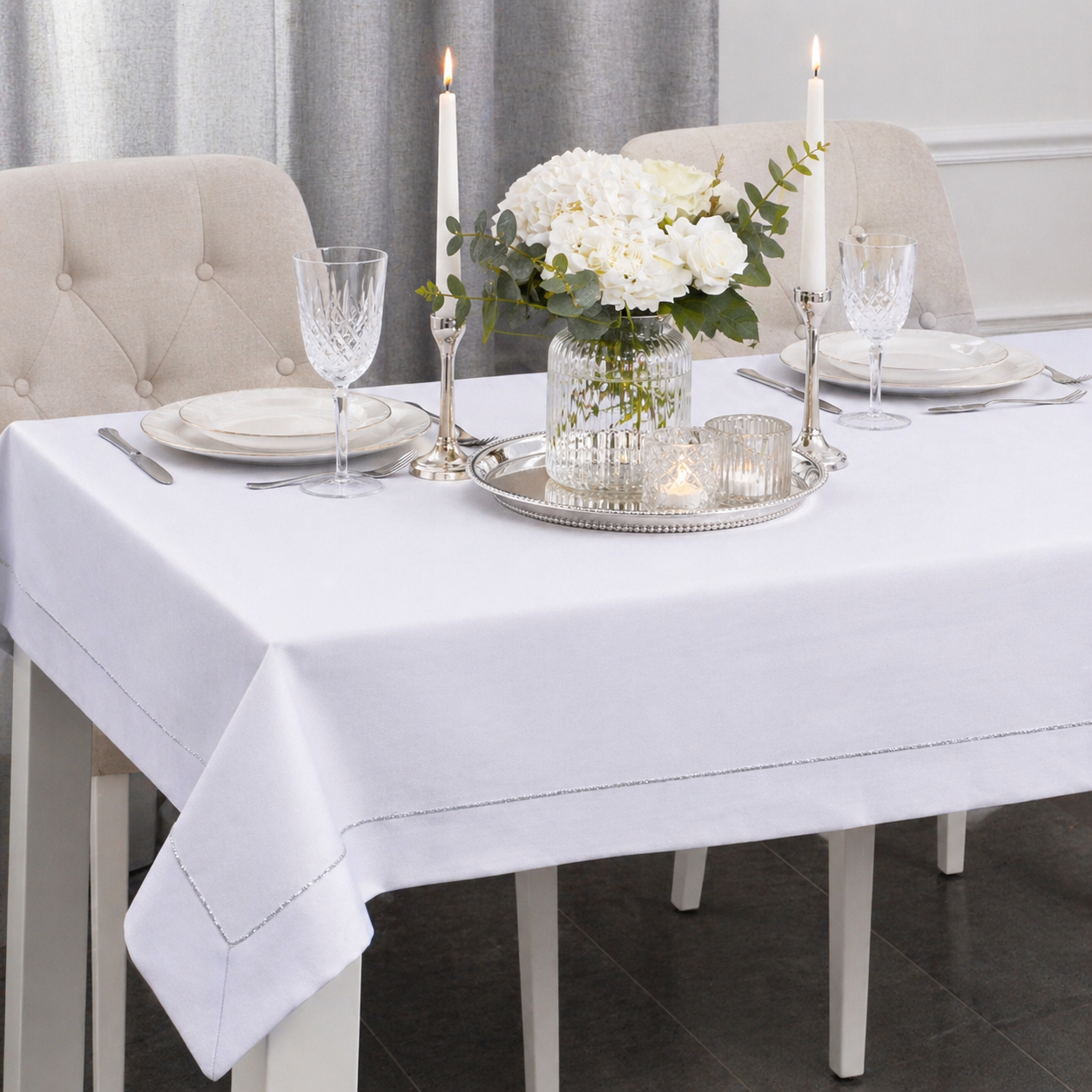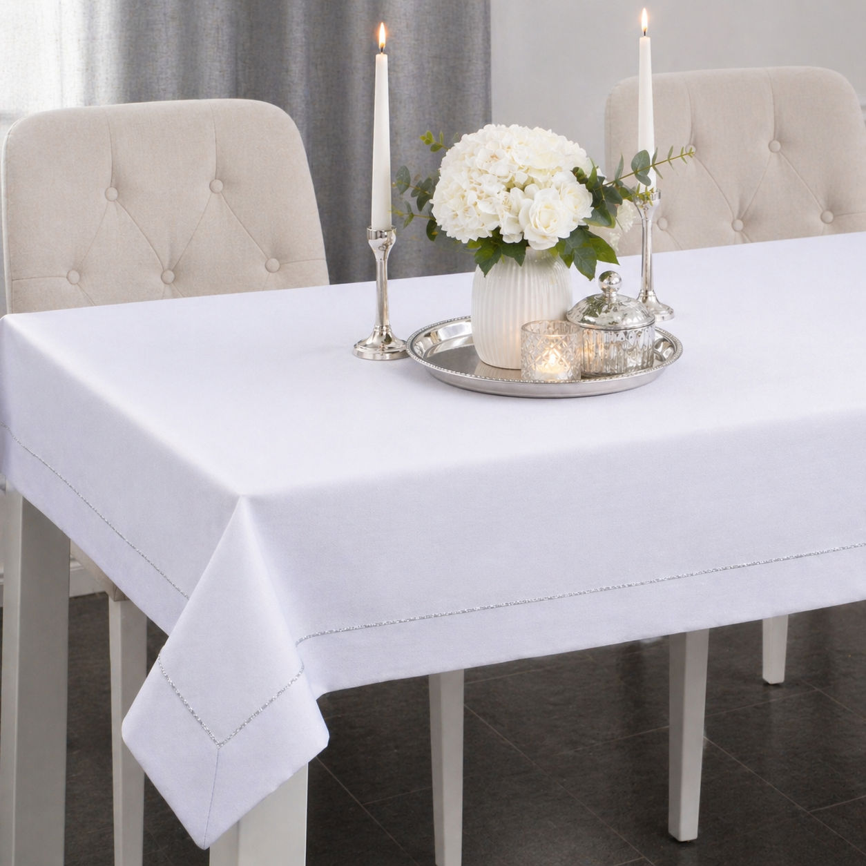 Obrus Panama Lux – Biały Srebro