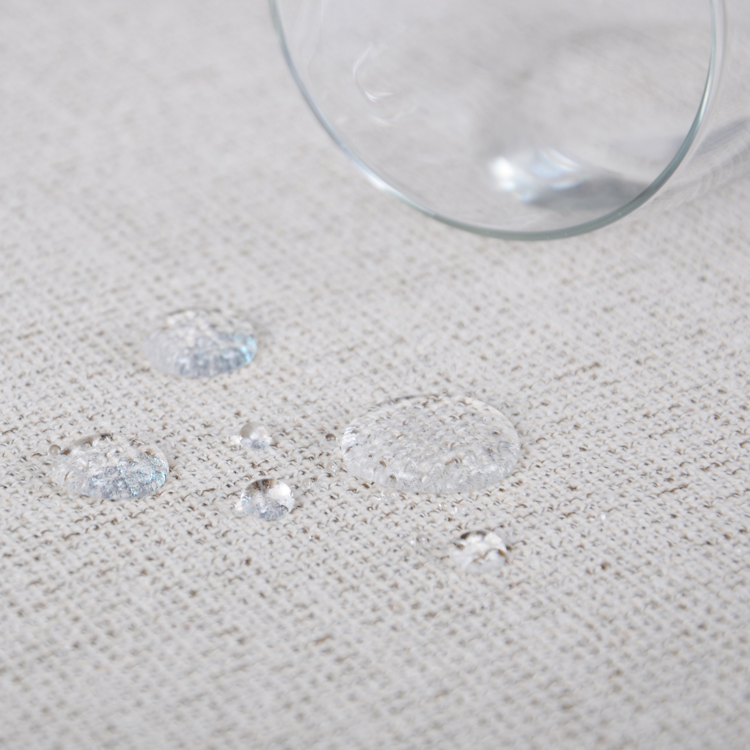 Tkanina pokryta jest powłoką plamoodporną, co zabezpiecza przed wchłanianiem płynów i chroni przed zabrudzeniami.