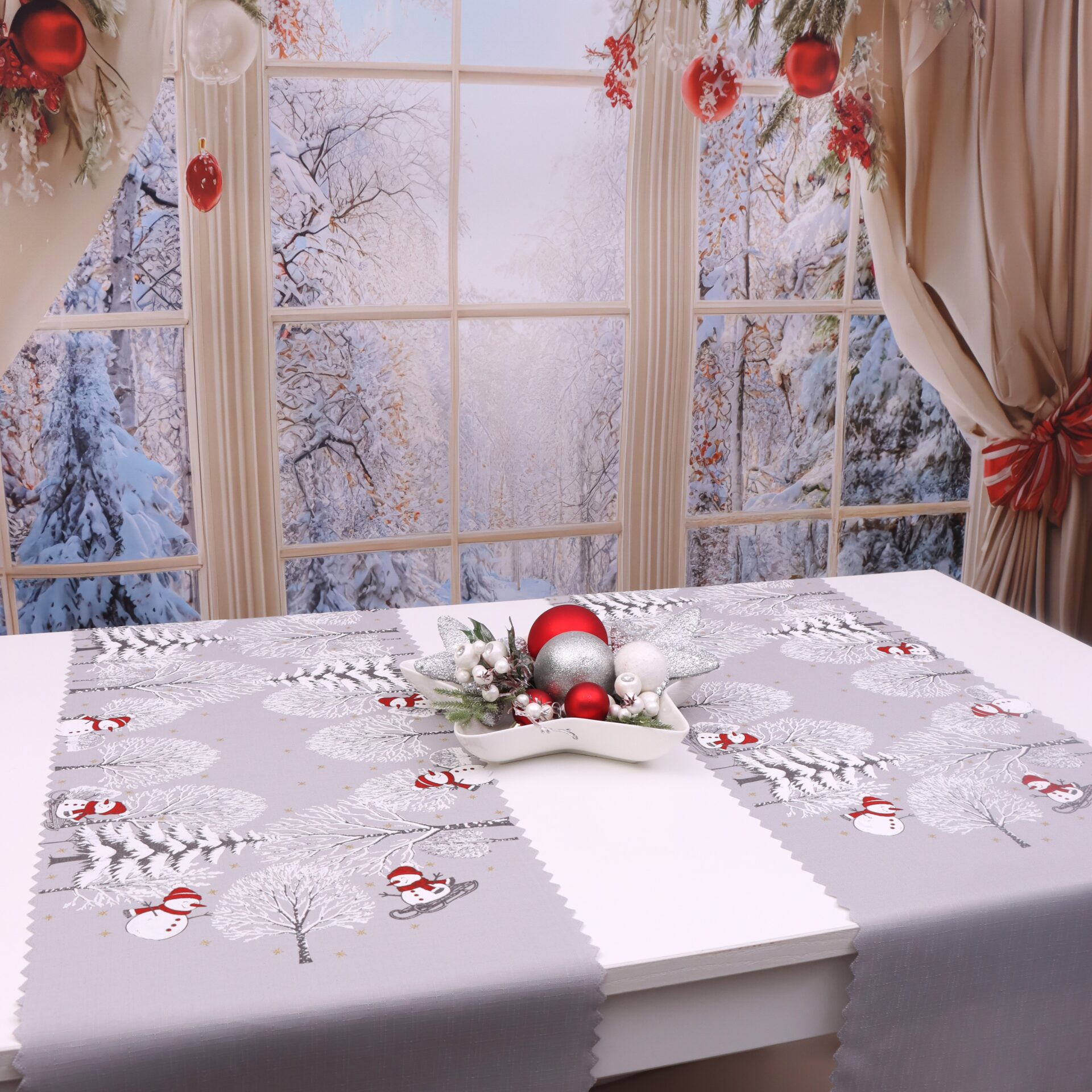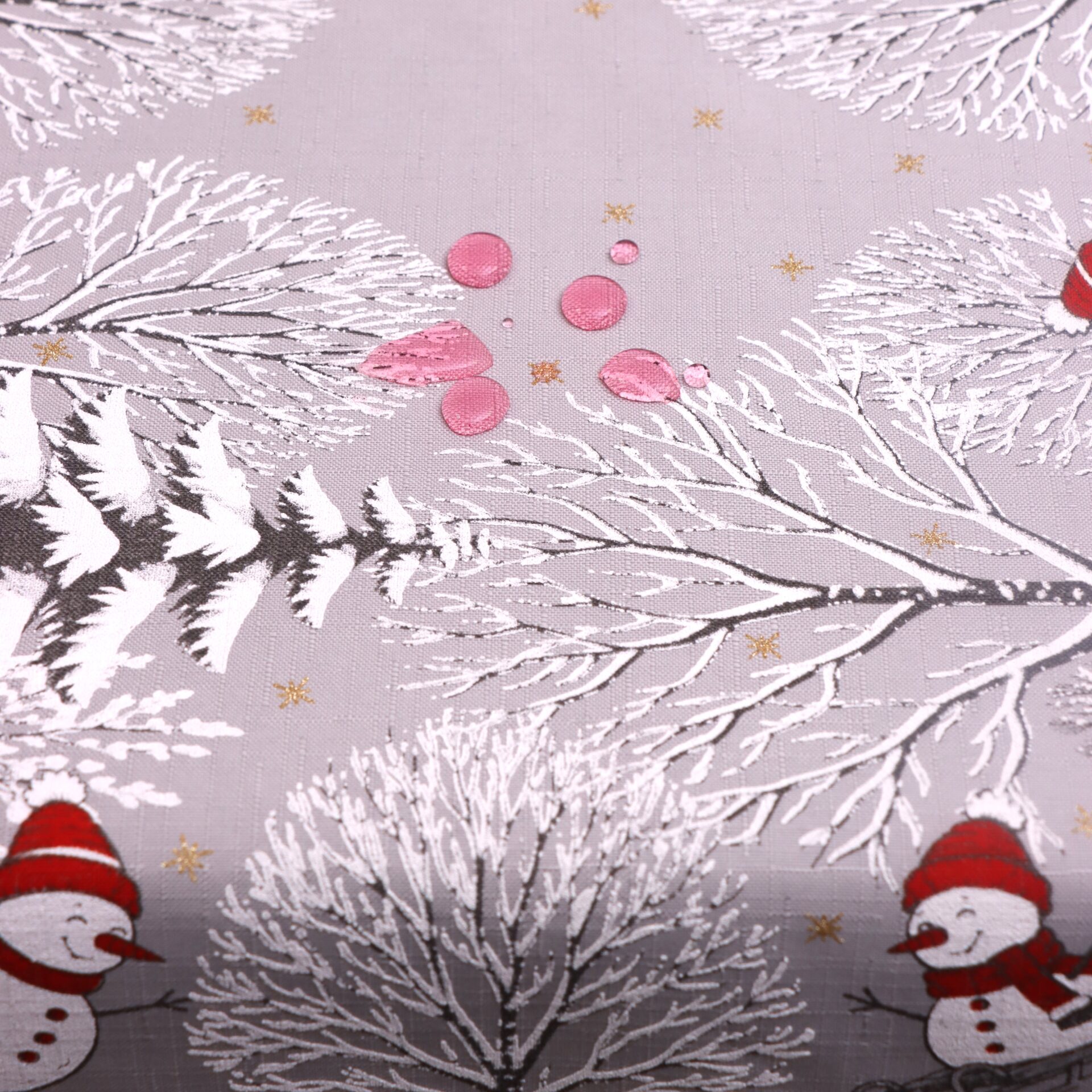 Kolekcja świąteczna wykonana jest z wysokogatunkowej, plamoodpornej tkaniny poliestrowej. Obrusy wykończone są wokół w ząbek na maszynach ultrasonicznych.