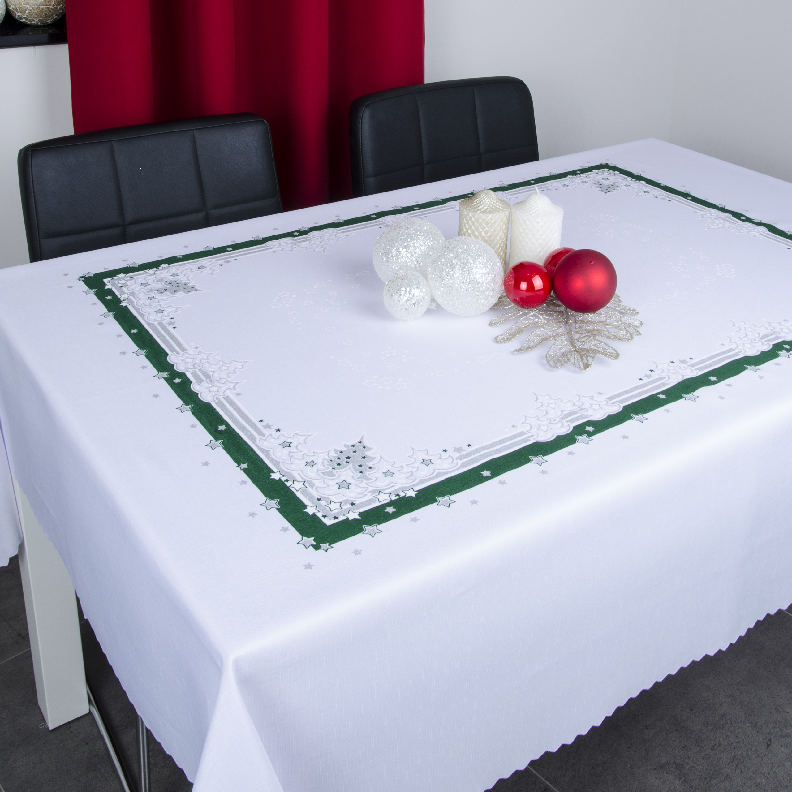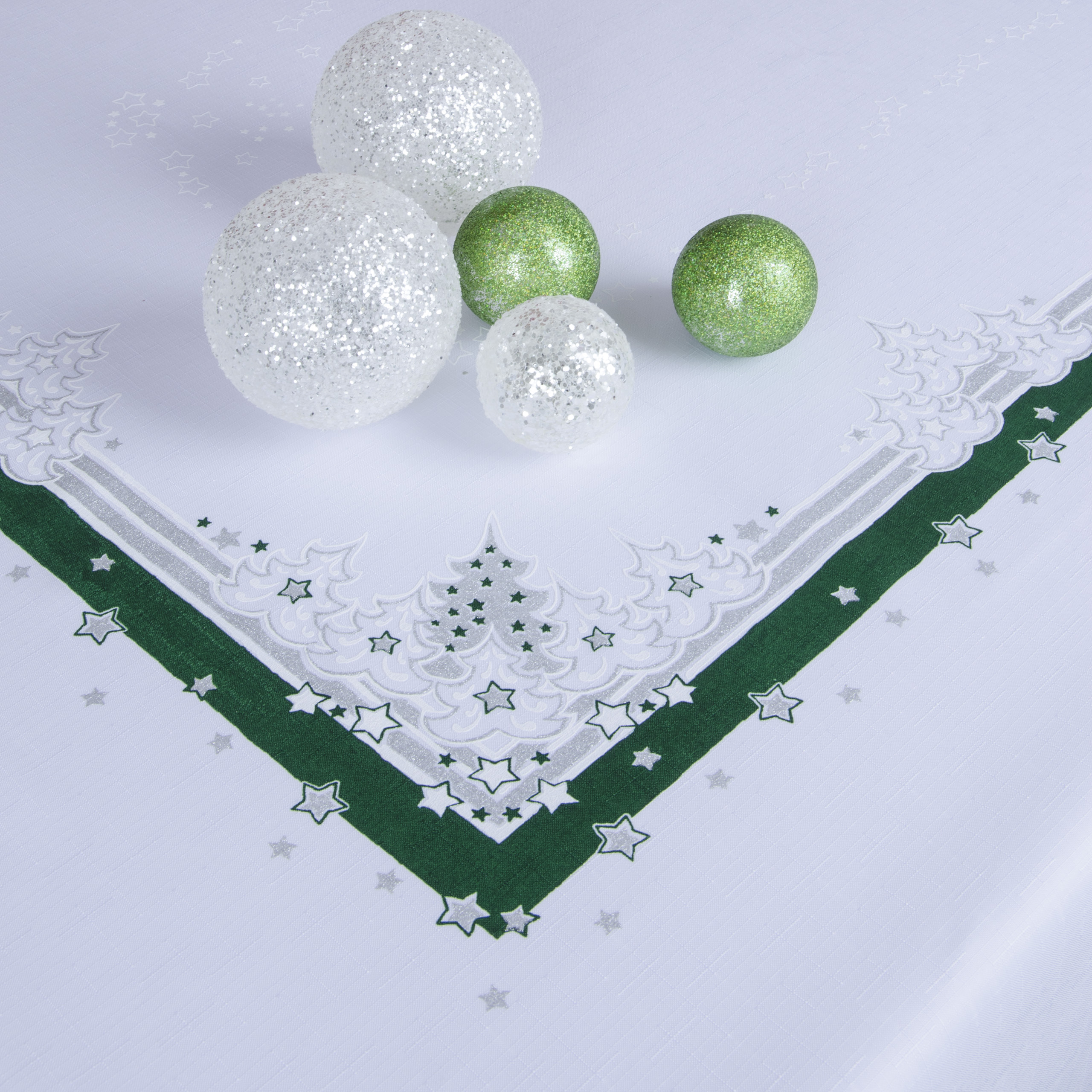 Obrus świąteczny biały-zieleń srebro
