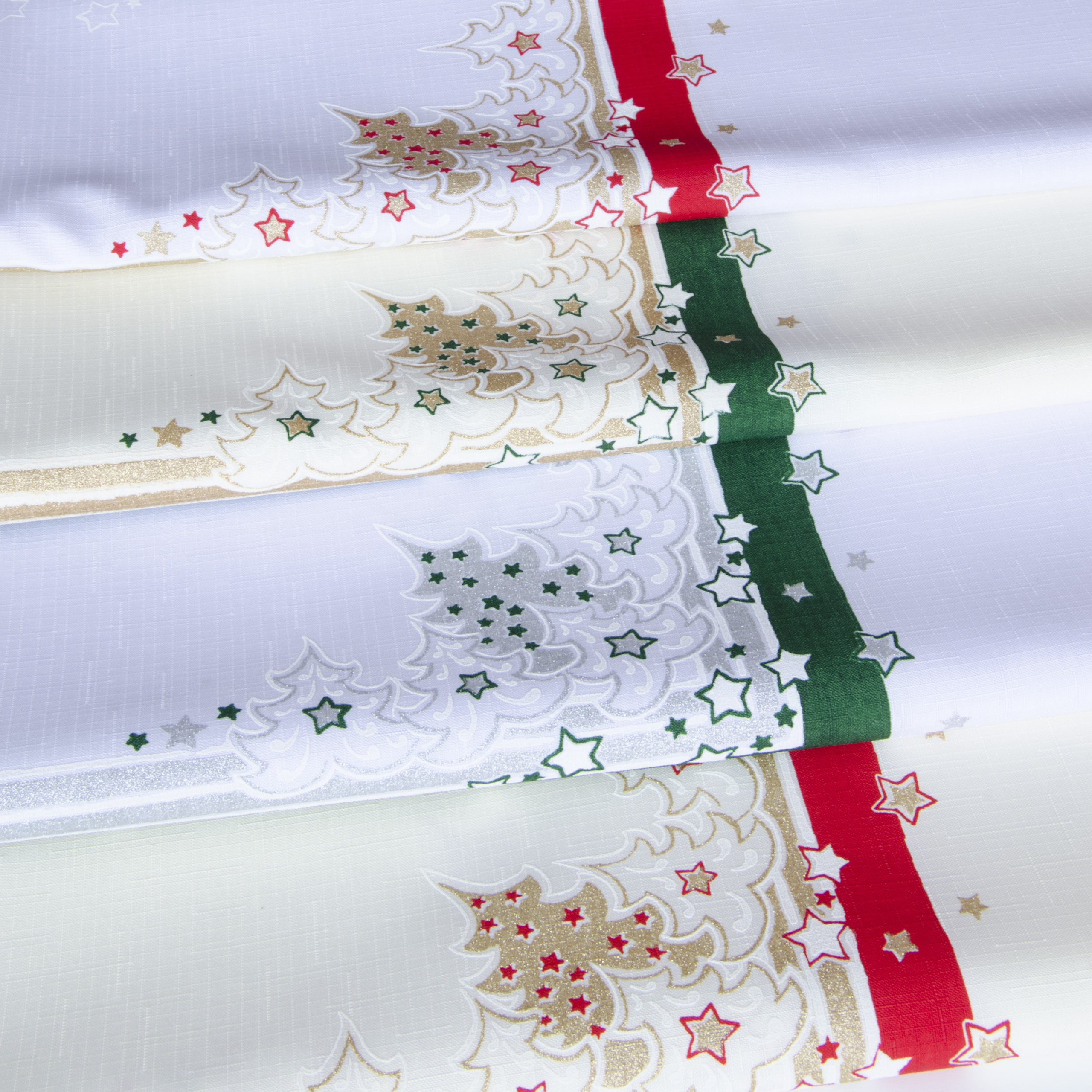 Kolekcja świąteczna wykonana jest z wysokogatunkowej, plamoodpornej tkaniny poliestrowej. Obrusy wykończone są wokół w ząbek na maszynach ultrasonicznych.