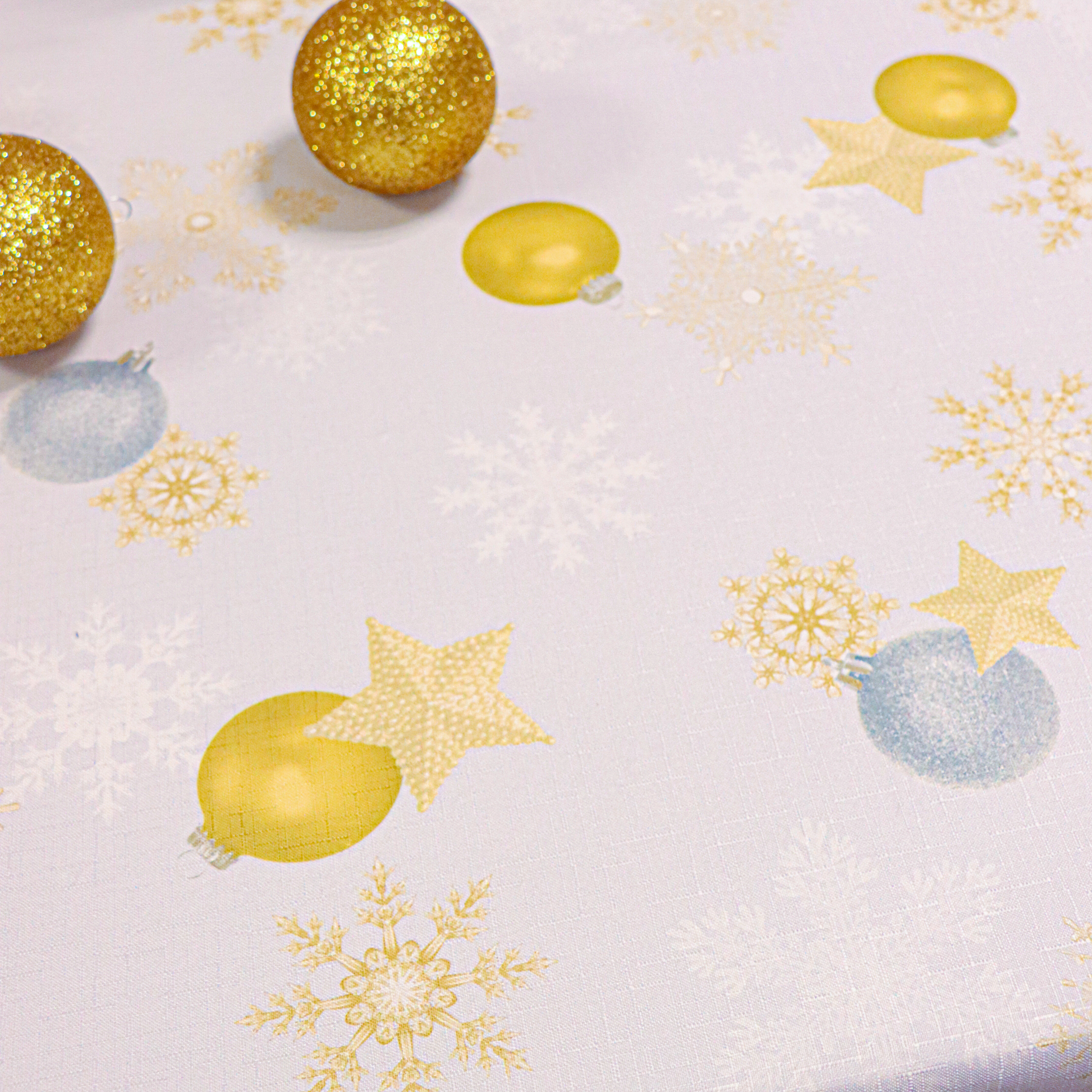 Obrus Świąteczny Boże Narodzenie – jasny szary złota bombka