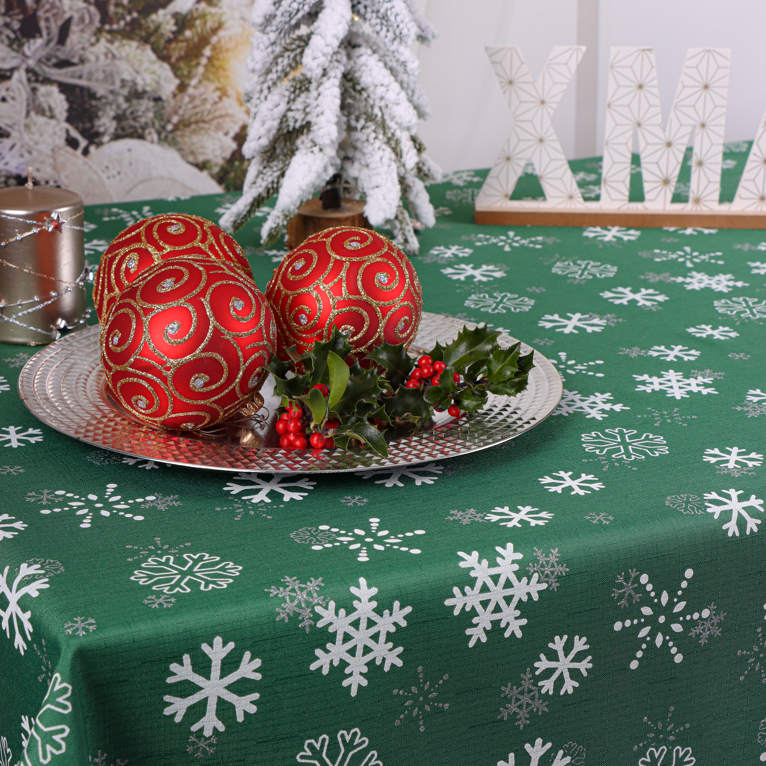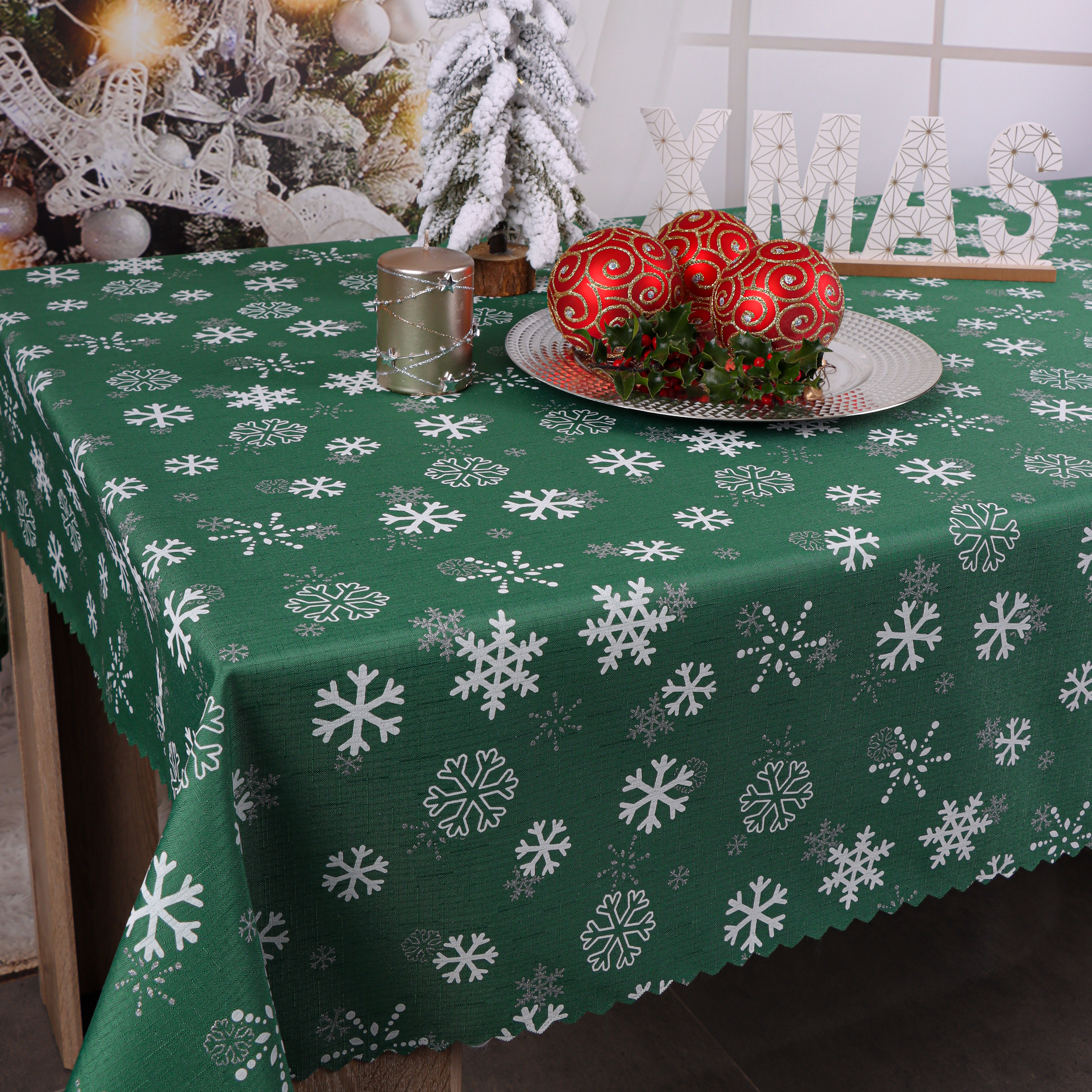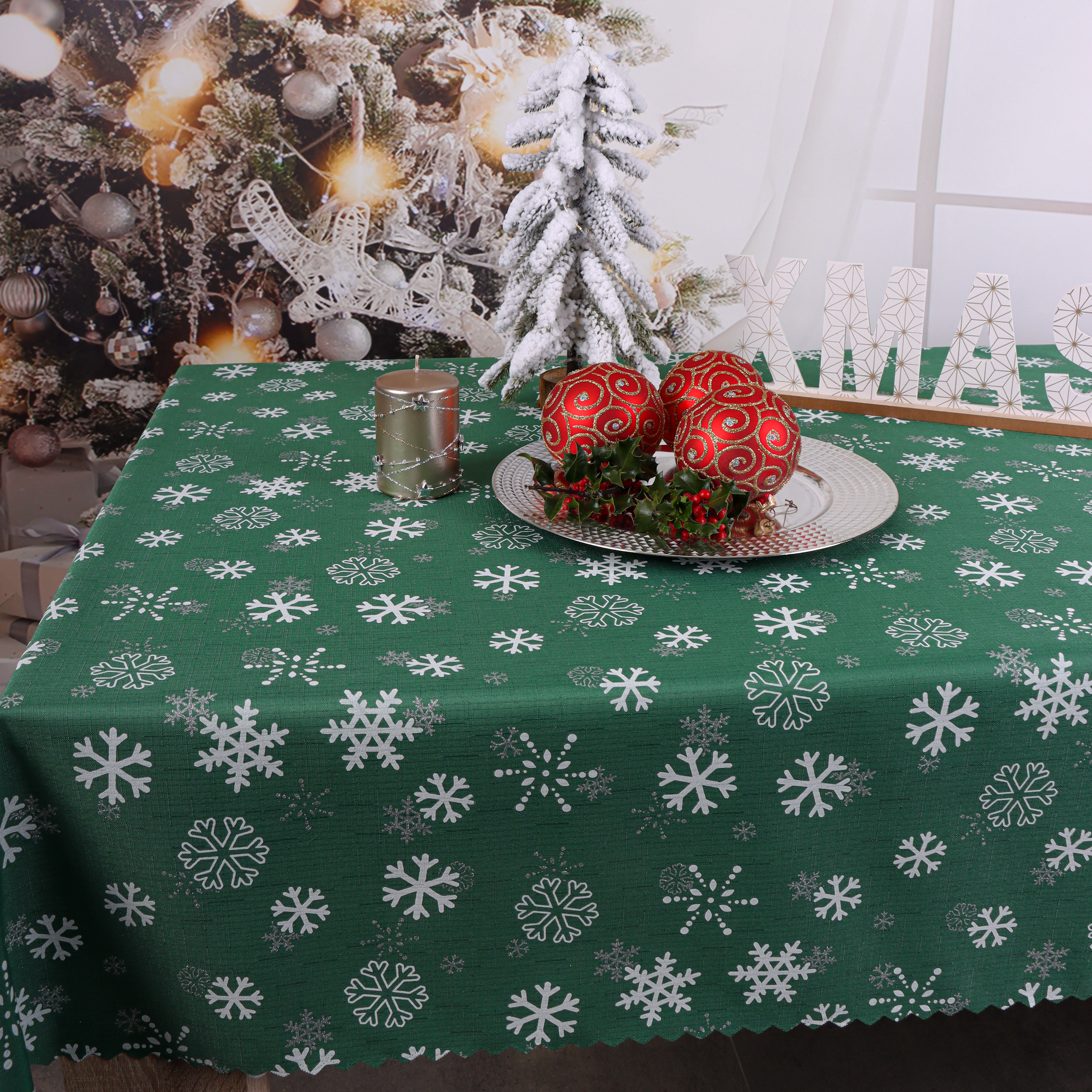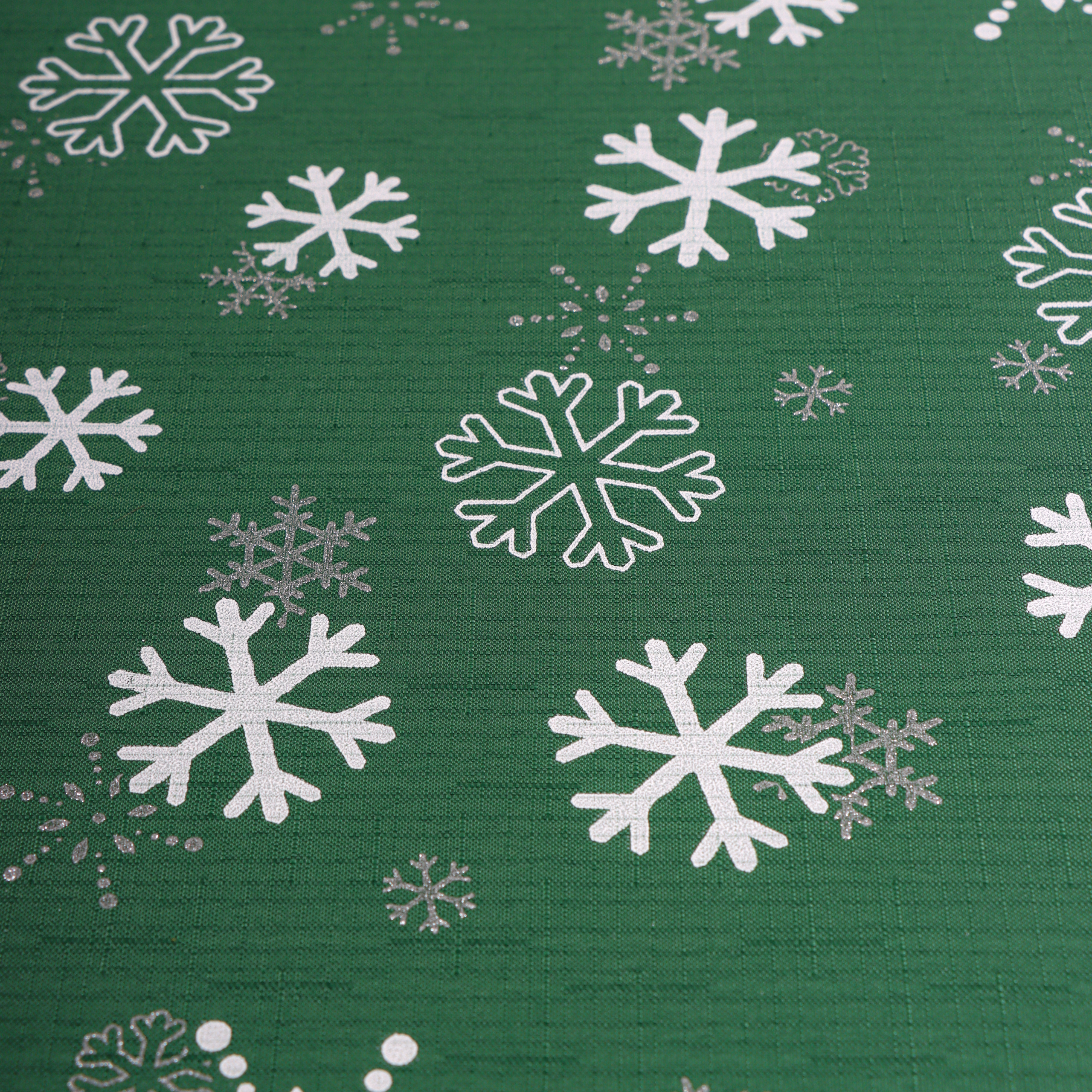 Obrus Świąteczny Śnieżynki – Ciemna zieleń