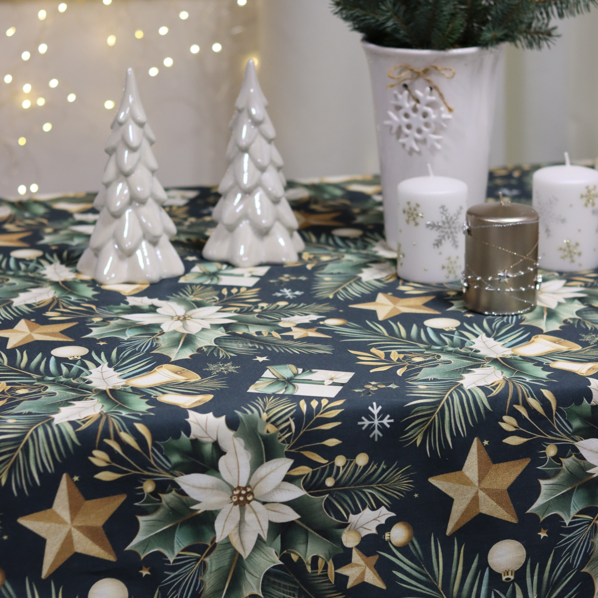 Obrus świąteczny – Złote gwiazdy