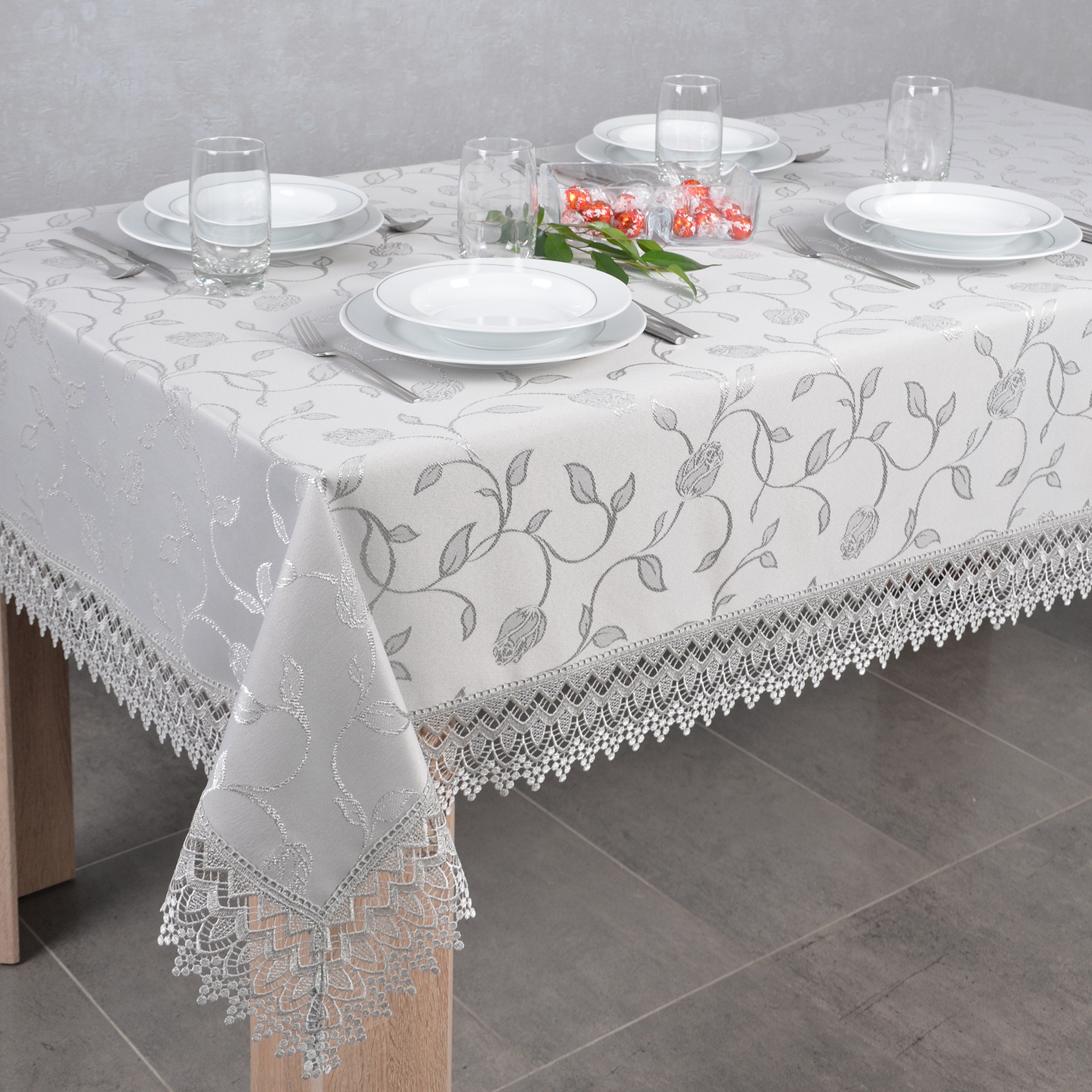 Obrusy z GIPIURĄ tkanina 127 to wyjątkowa kolekcja żakardowych obrusów wykończonych ozdobną gipiurą o szerokości 9 cm. Dekoracyjna gipiura nadaje obrusowi eleganckiego szyku oraz wyjątkowego designu. Obrusy dostępne są w wielu kolorach oraz rozmiarach, dlatego dopasowanie nie będzie stanowiło problemu.