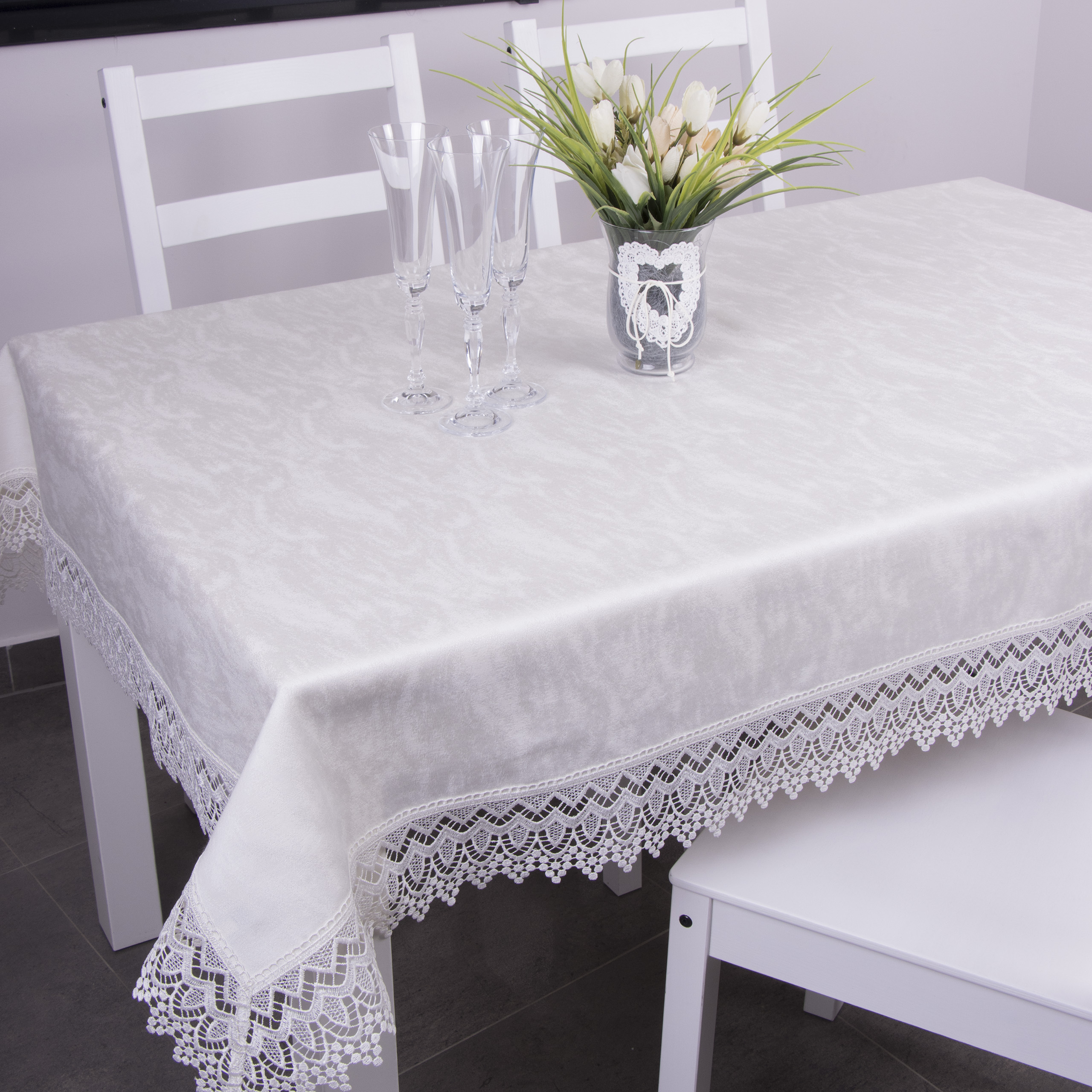Obrusy z GIPIURĄ to wyjątkowa kolekcja żakardowych obrusów wykończonych ozdobną gipiurą o szerokości 9 cm. Dekoracyjna gipiura nadaje obrusowi eleganckiego szyku oraz wyjątkowego designu. Obrusy dostępne są w wielu kolorach oraz rozmiarach, dlatego dopasowanie nie będzie stanowiło problemu.