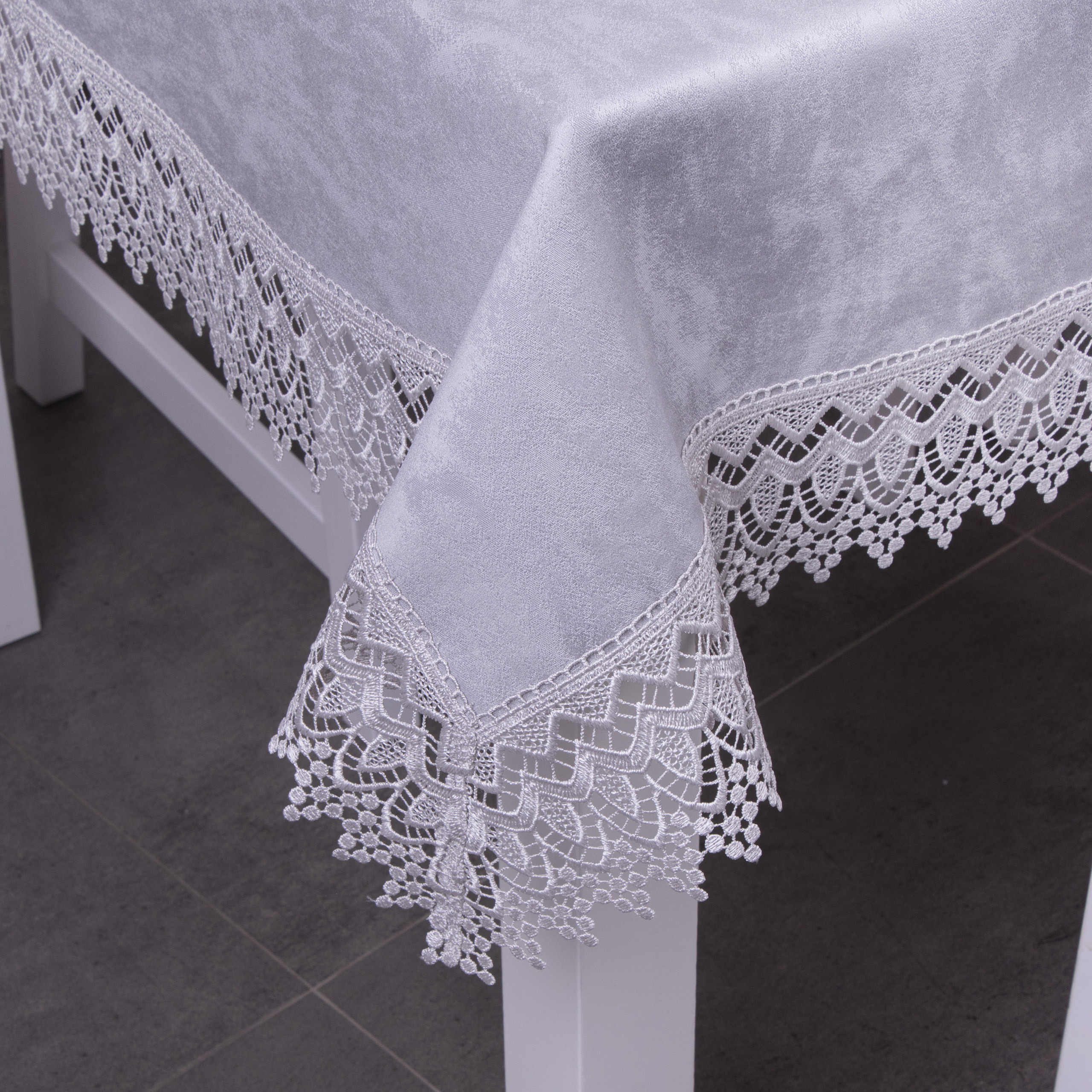 Obrusy z GIPIURĄ to wyjątkowa kolekcja żakardowych obrusów wykończonych ozdobną gipiurą o szerokości 9 cm. Dekoracyjna gipiura nadaje obrusowi eleganckiego szyku oraz wyjątkowego designu. Obrusy dostępne są w wielu kolorach oraz rozmiarach, dlatego dopasowanie nie będzie stanowiło problemu.