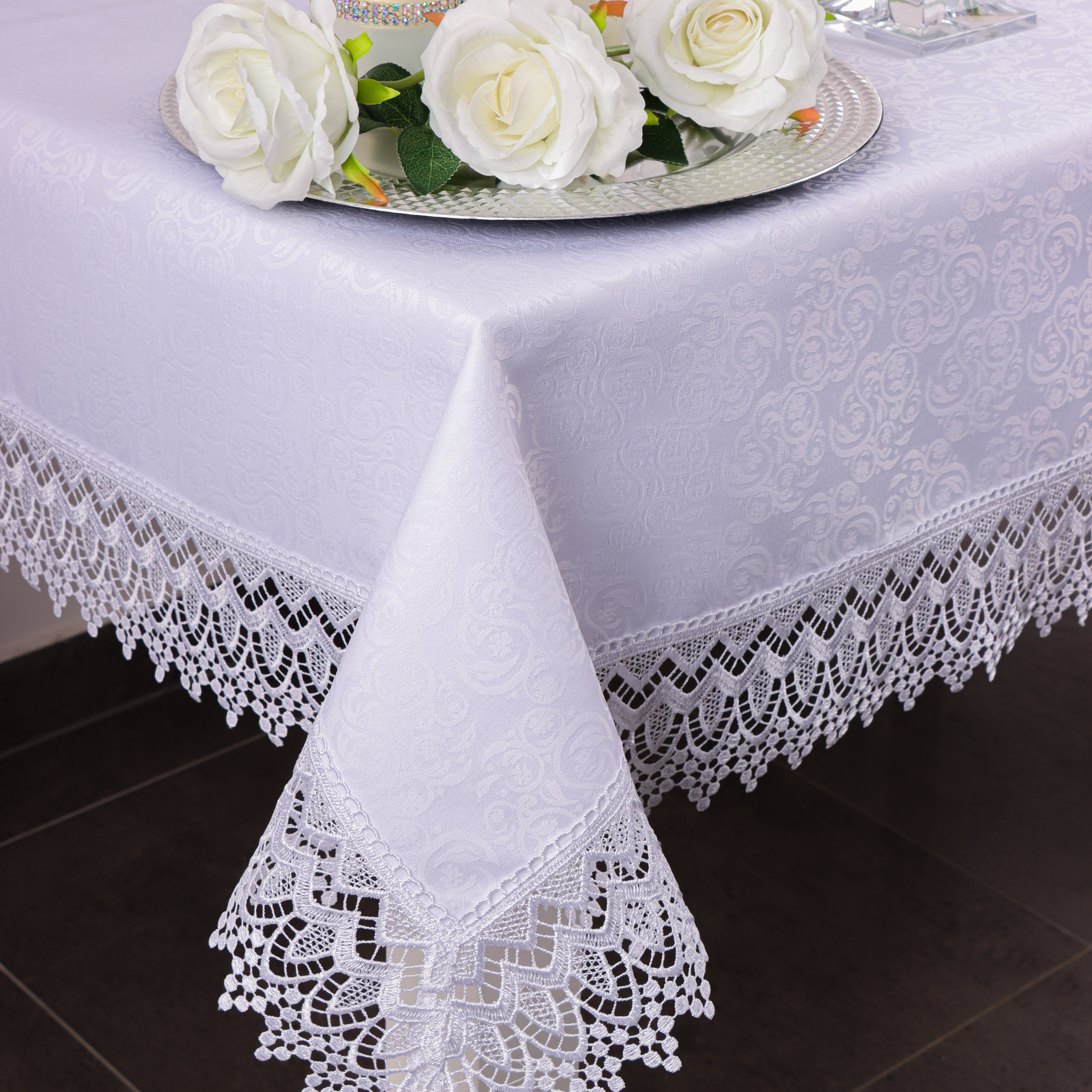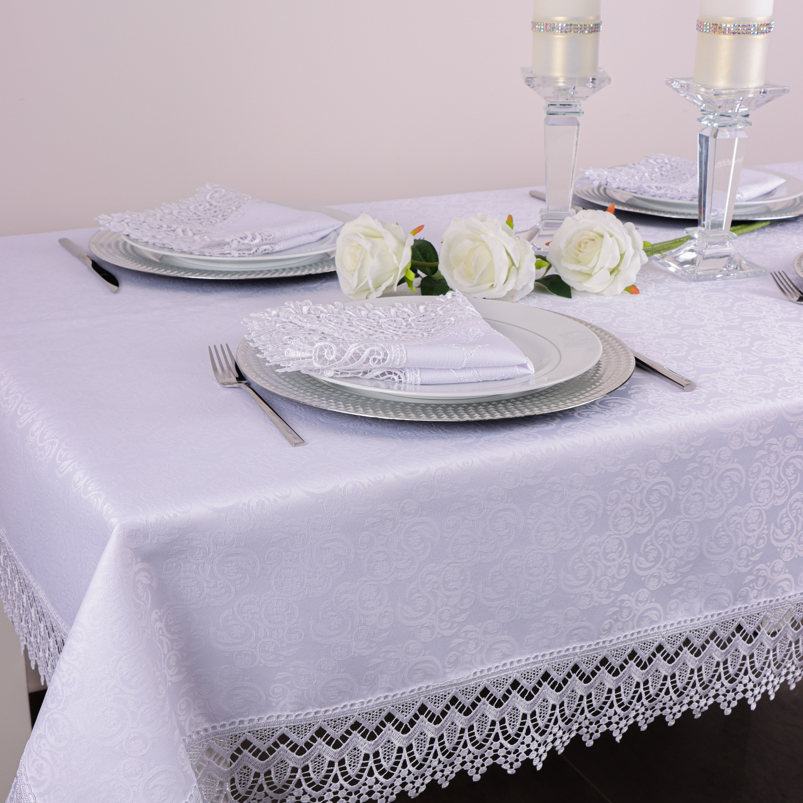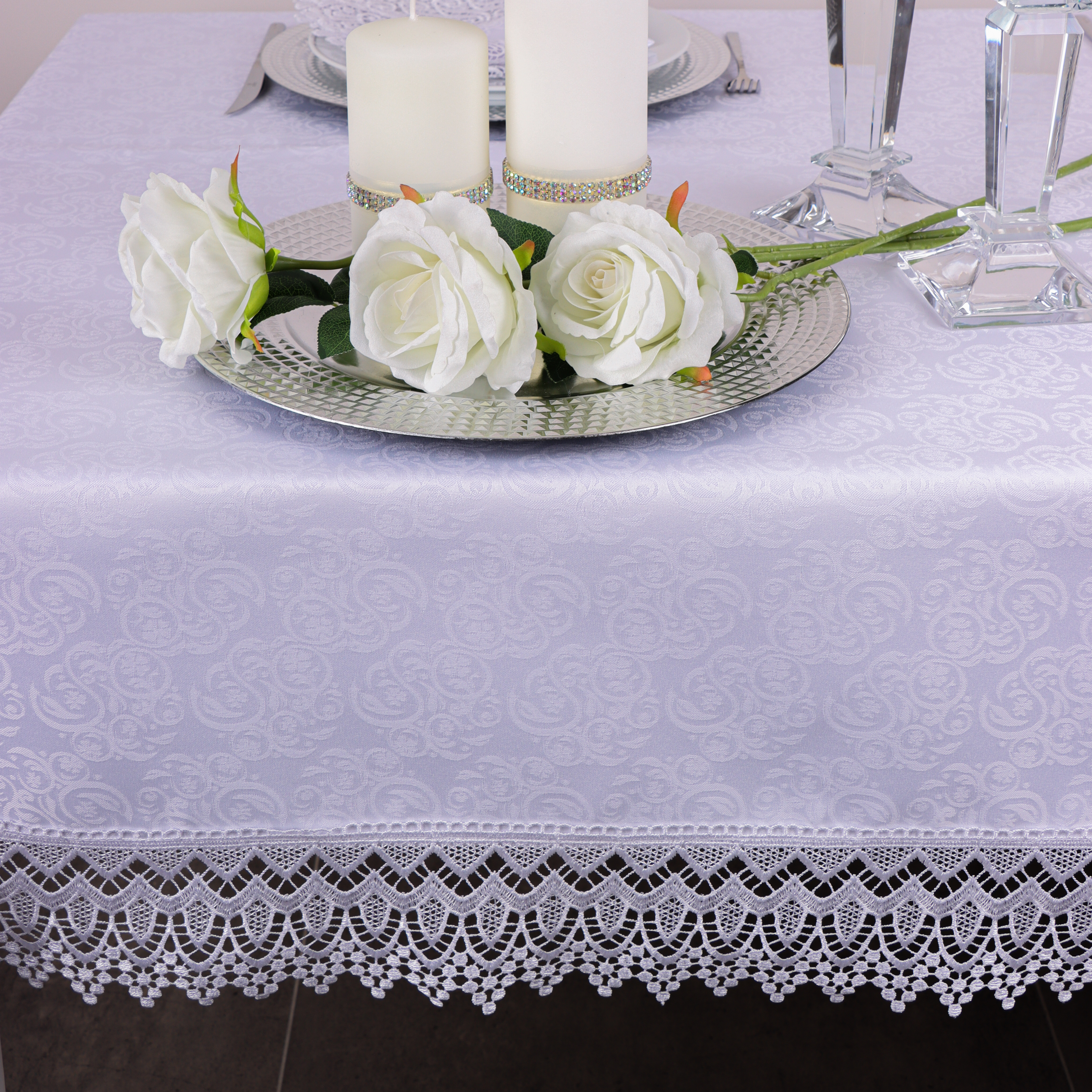 Obrus z Gipiurą Żakard – Biel 250