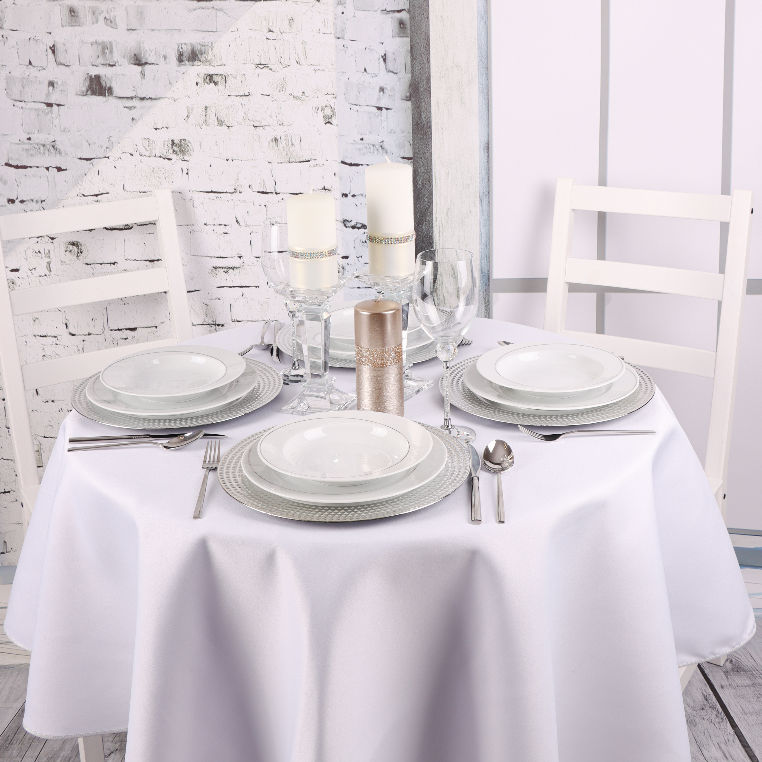 Tkanina poliestrowa z delikatnym połyskiem jest stworzona dla gastronomii! Czy to w kameralnej restauracji czy podczas uroczystości jak komunia, chrzciny czy wesele, te obrusy tworzą atmosferę wyjątkowego święta. Srebrne detale nadają całości luksusowego charakteru, a biały kolor dodaje lekkości i czystości.