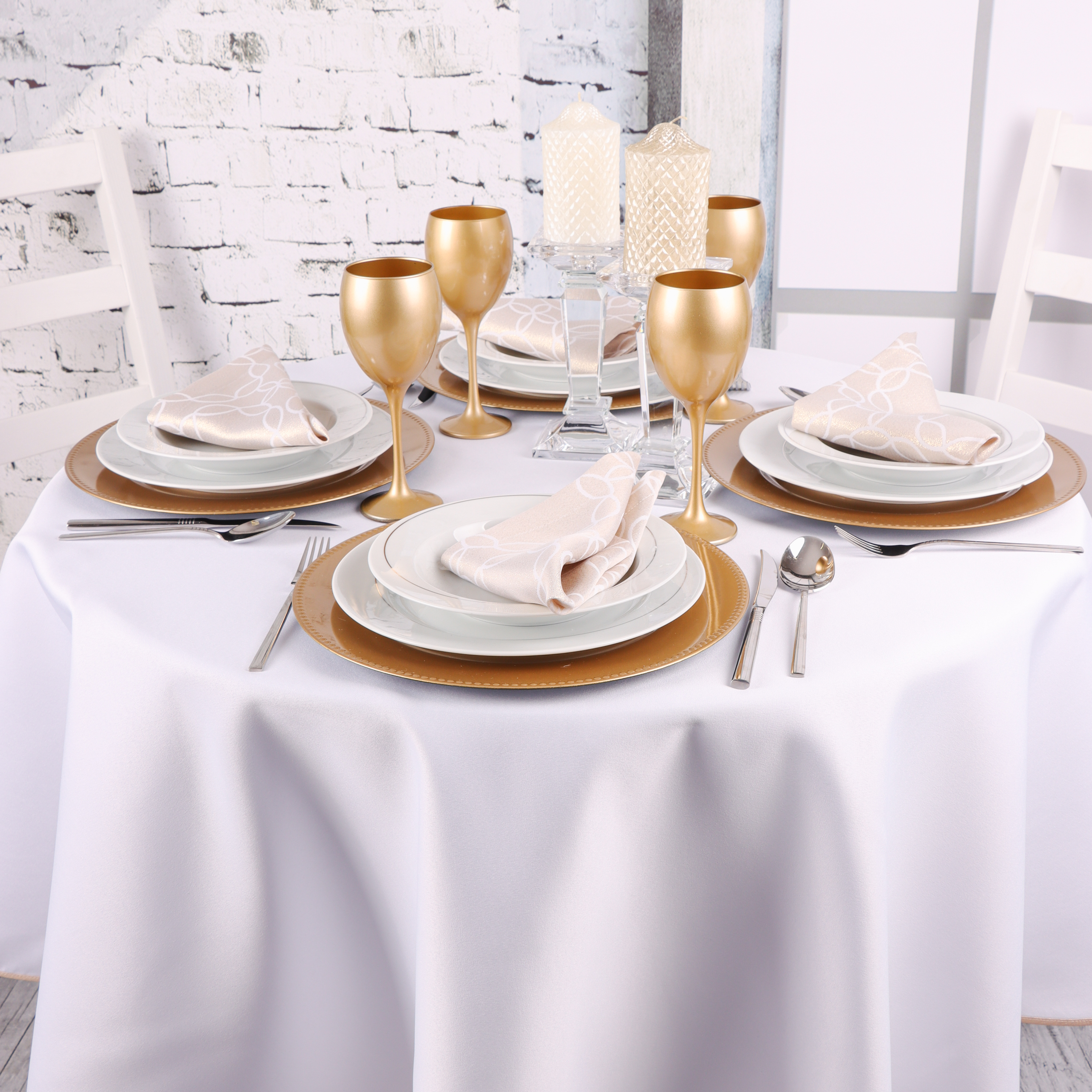 Tkanina poliestrowa z delikatnym połyskiem jest stworzona dla gastronomii! Czy to w kameralnej restauracji czy podczas uroczystości jak komunia, chrzciny czy wesele, te obrusy tworzą atmosferę wyjątkowego święta. Złote detale nadają całości luksusowego charakteru, a biały kolor dodaje lekkości i czystości.