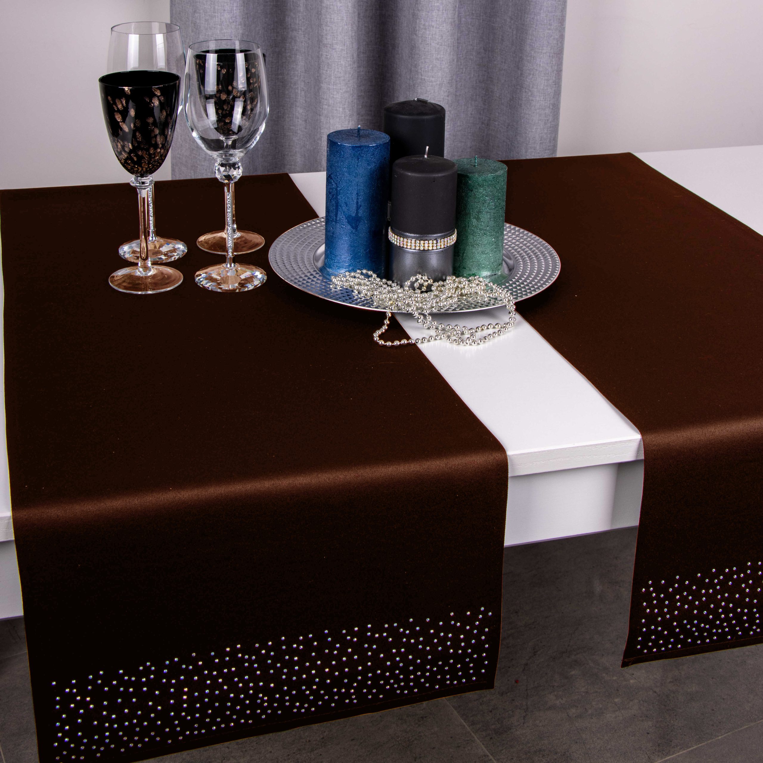 BRYLANT to wyjątkowa kolekcja atłasowych bieżników, które wykończone są estetycznym podłożeniem na 1 cm oraz ozdobione są nowoczesnym wzorem, wykonanym ze szklanych kryształków, odpowiednio dobranych kolorystycznie. Bieżniki dostępne są w wielu kolorach oraz rozmiarach, dlatego dopasowanie nie będzie stanowiło problemu. Ich wygląd sprawi, że nadadzą wnętrzu wyjątkowy urok, przy każdej ważnej uroczystości, jak ślub, komunia, chrzest ale również podczas przyjęcia urodzinowego, imieninowego i przy każdej ważnej uroczystości. Potrafią ozdobić każdy stół.