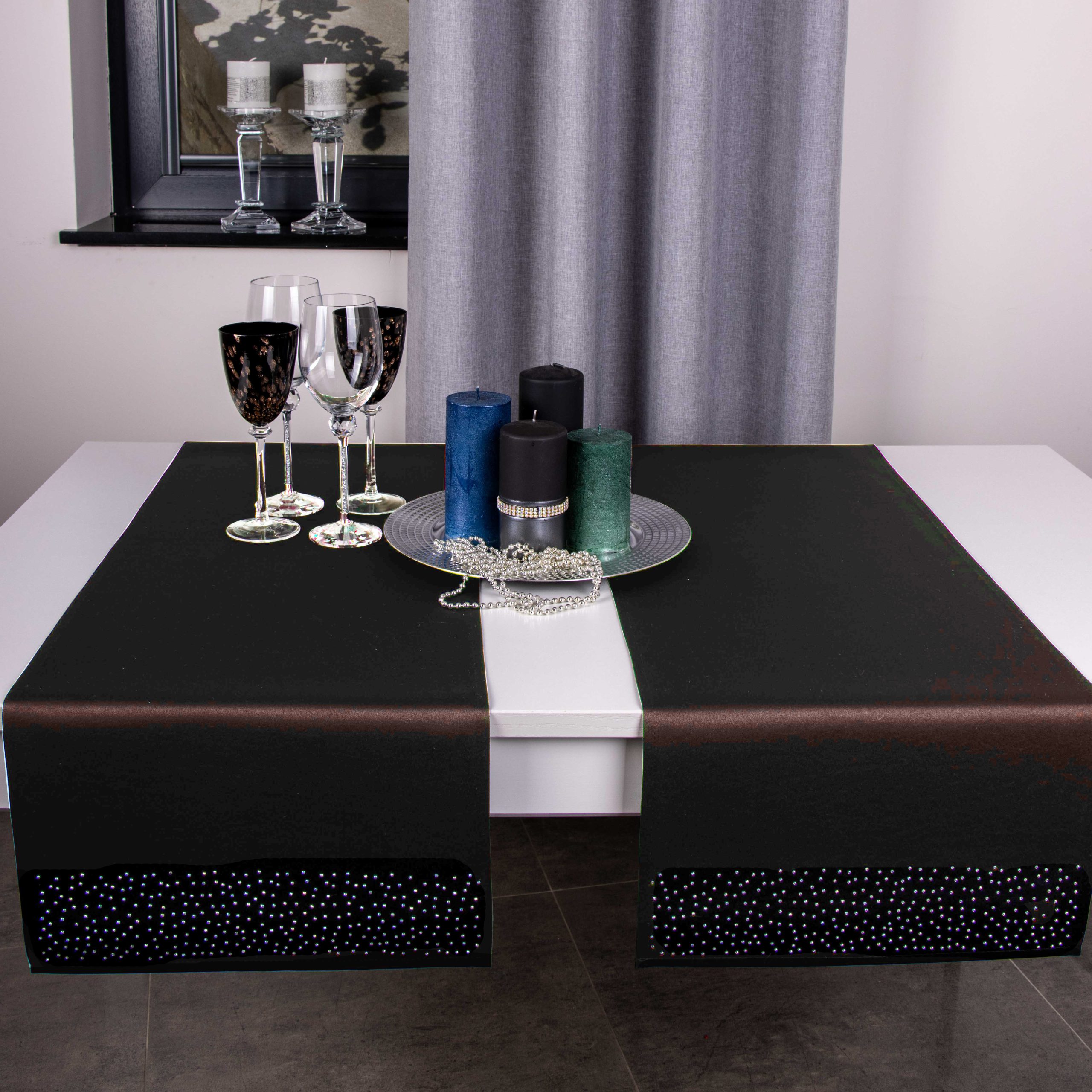 Pasy doskonale pasują do większości salonów i jadalni, ale znajdą również zastosowanie w restauracjach, hotelach oraz kafejkach. Ich niepowtarzalny wygląd idealnie komponuje się z kontrastującymi dodatkami takimi jak zastawa stołowa, sztućce czy świeczniki. Pasy zdobione są na obu końcach kryształkami.