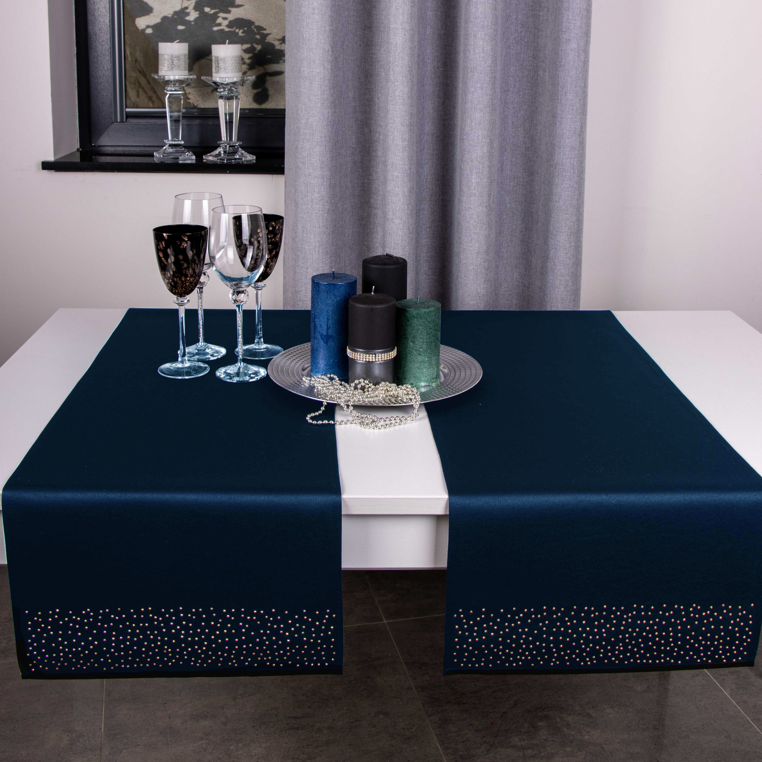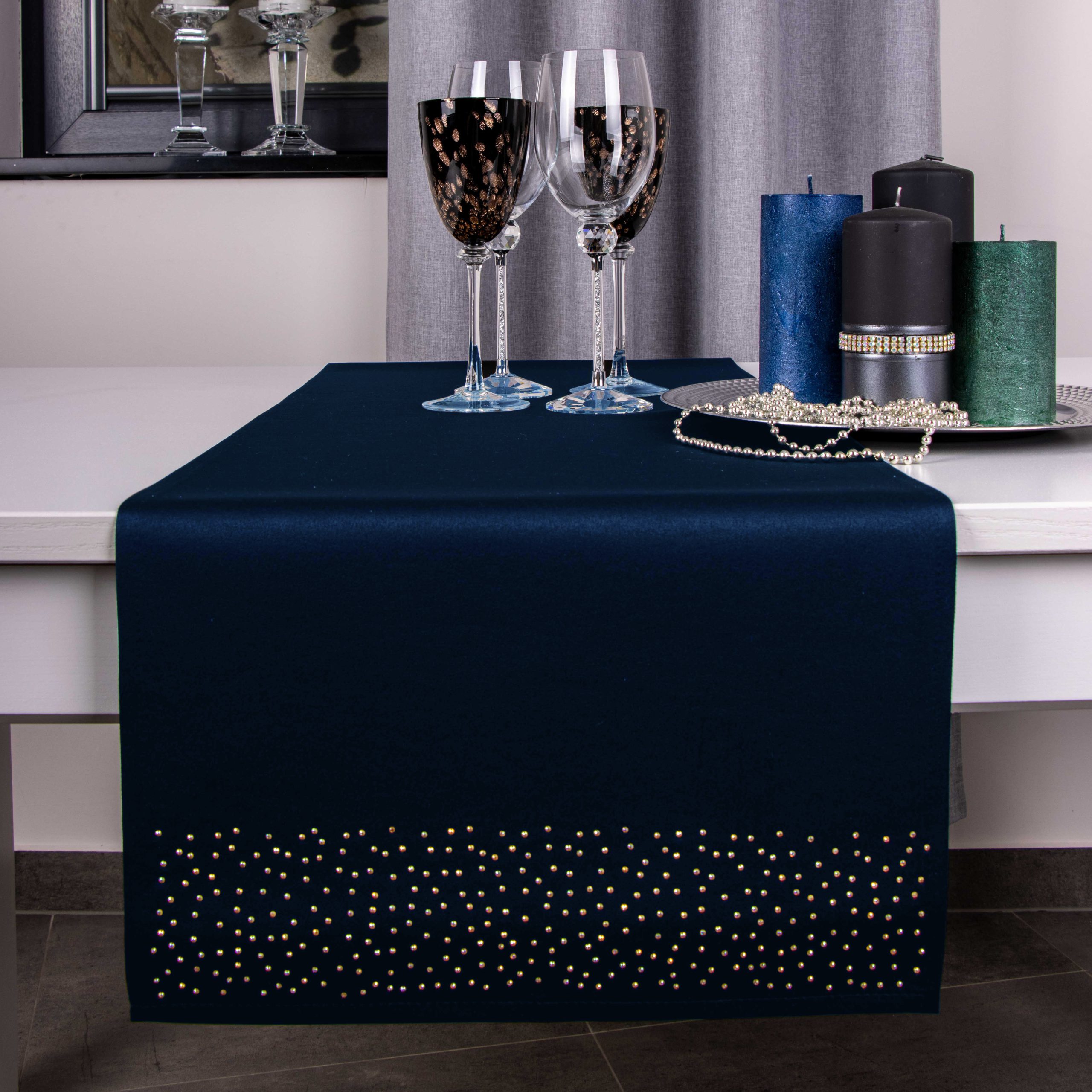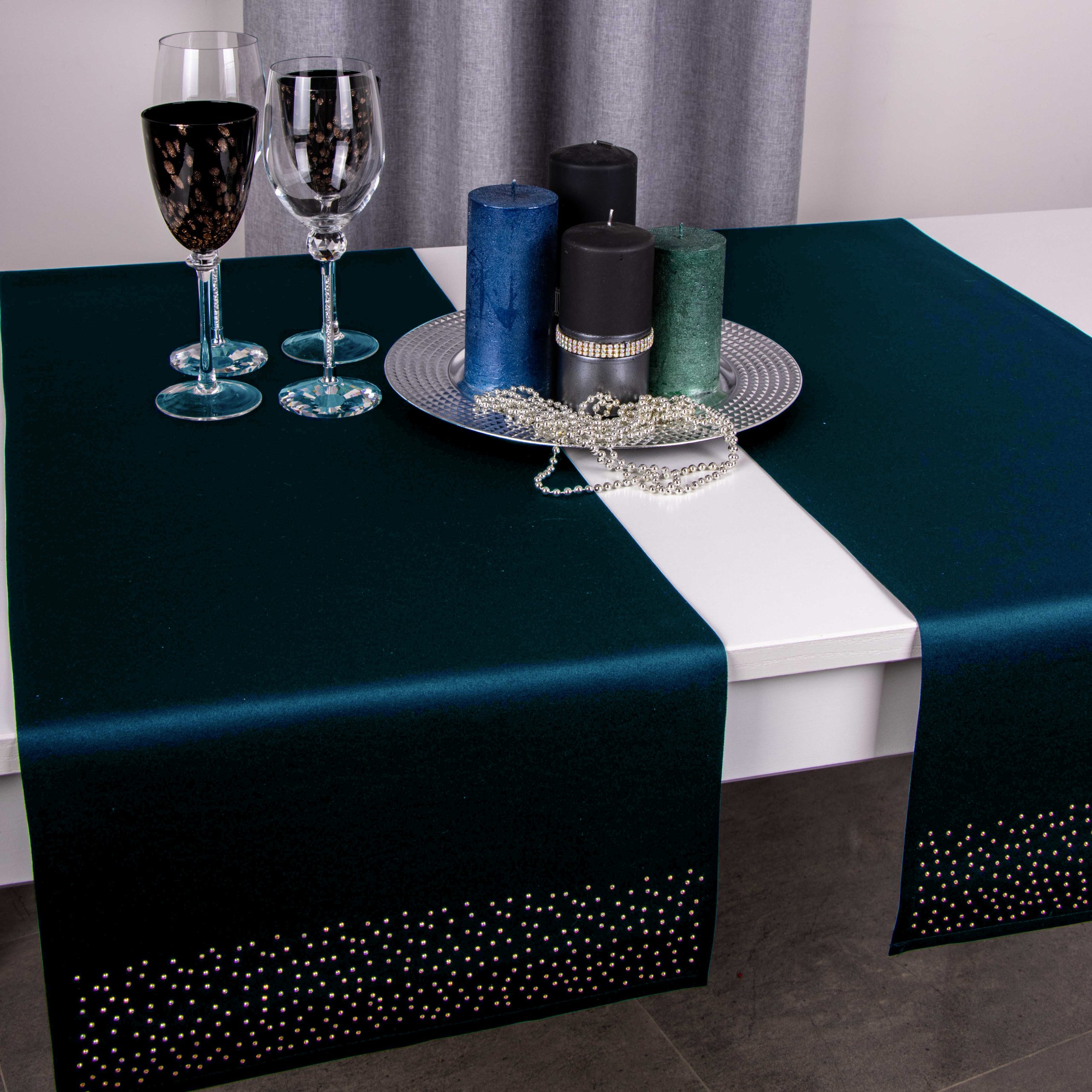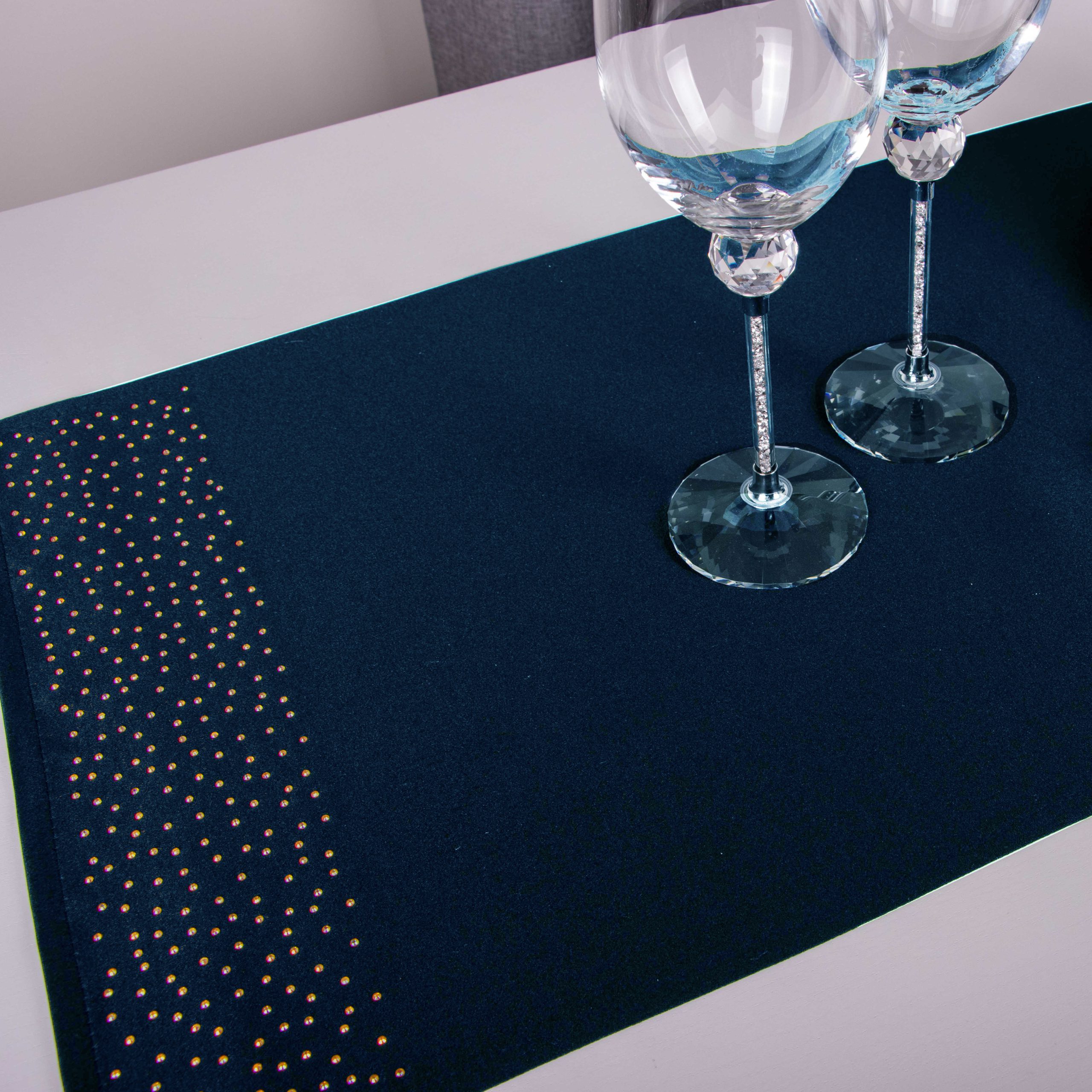 Pasy doskonale pasują do większości salonów i jadalni, ale znajdą również zastosowanie w restauracjach, hotelach oraz kafejkach. Ich niepowtarzalny wygląd idealnie komponuje się z kontrastującymi dodatkami takimi jak zastawa stołowa, sztućce czy świeczniki. Pasy zdobione są na obu końcach kryształkami.