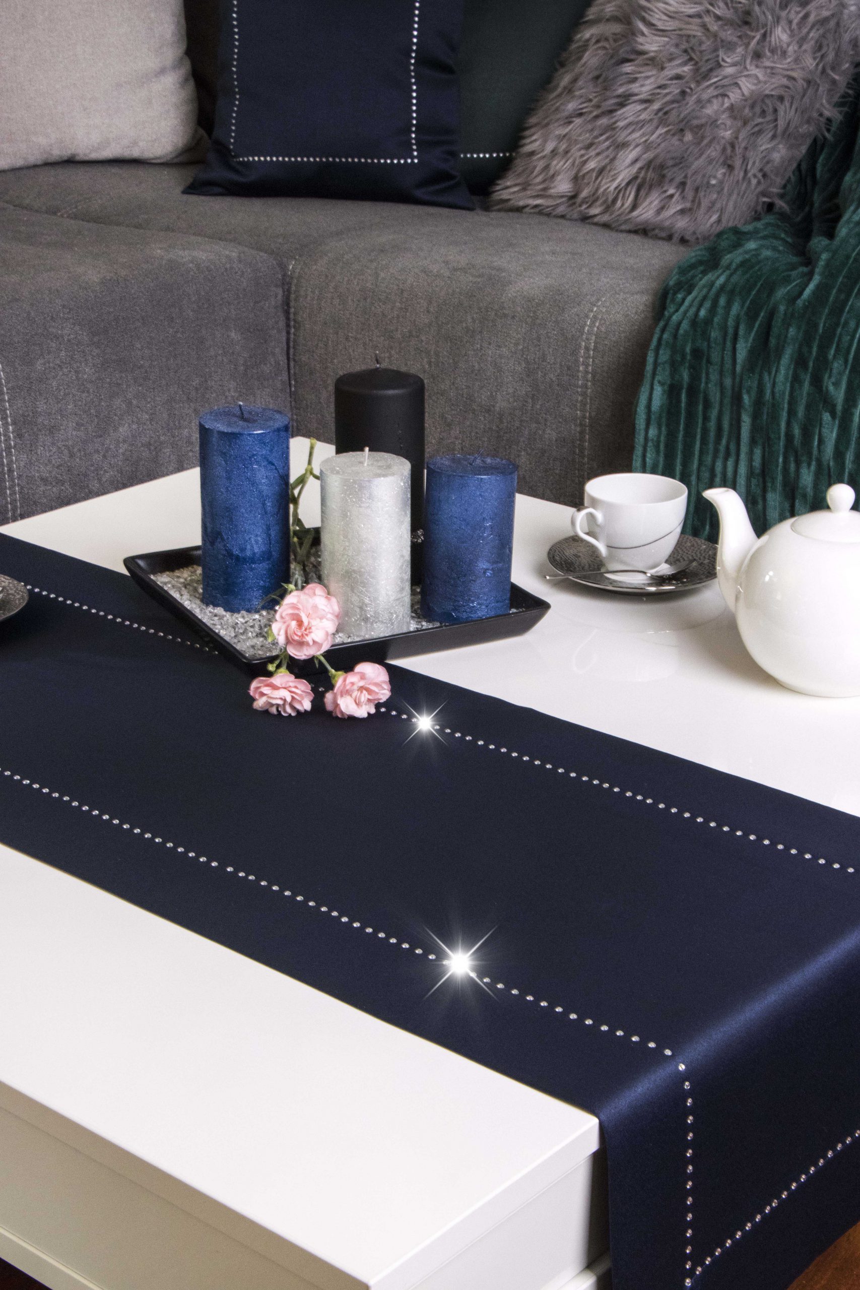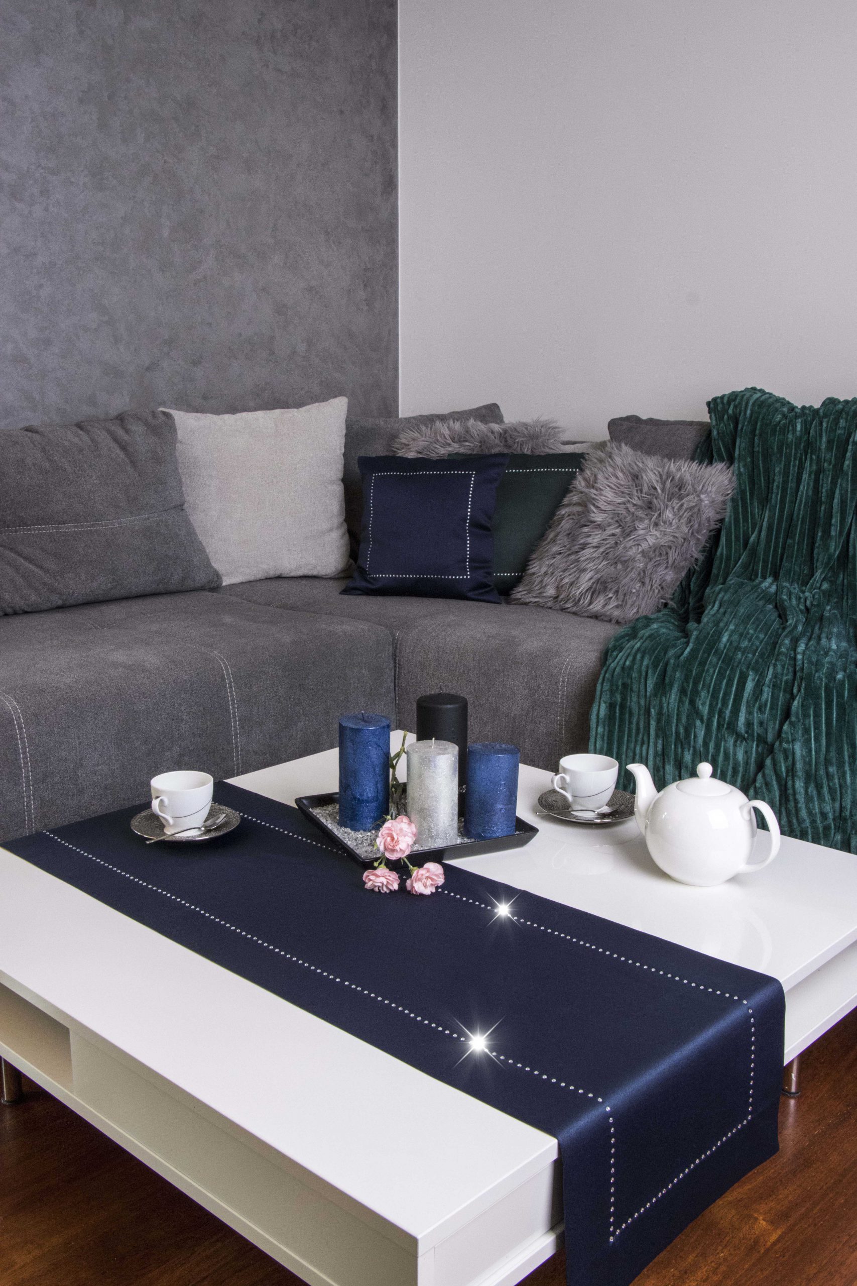 GLAMOUR to wyjątkowa kolekcja atłasowych obrusów wykończonych ozdobną listwą o szerokości 7 cm, wzdłuż obszycia ozdobione są nowoczesnym wzorem wykonanym z metalowych, srebrnych dżetów.