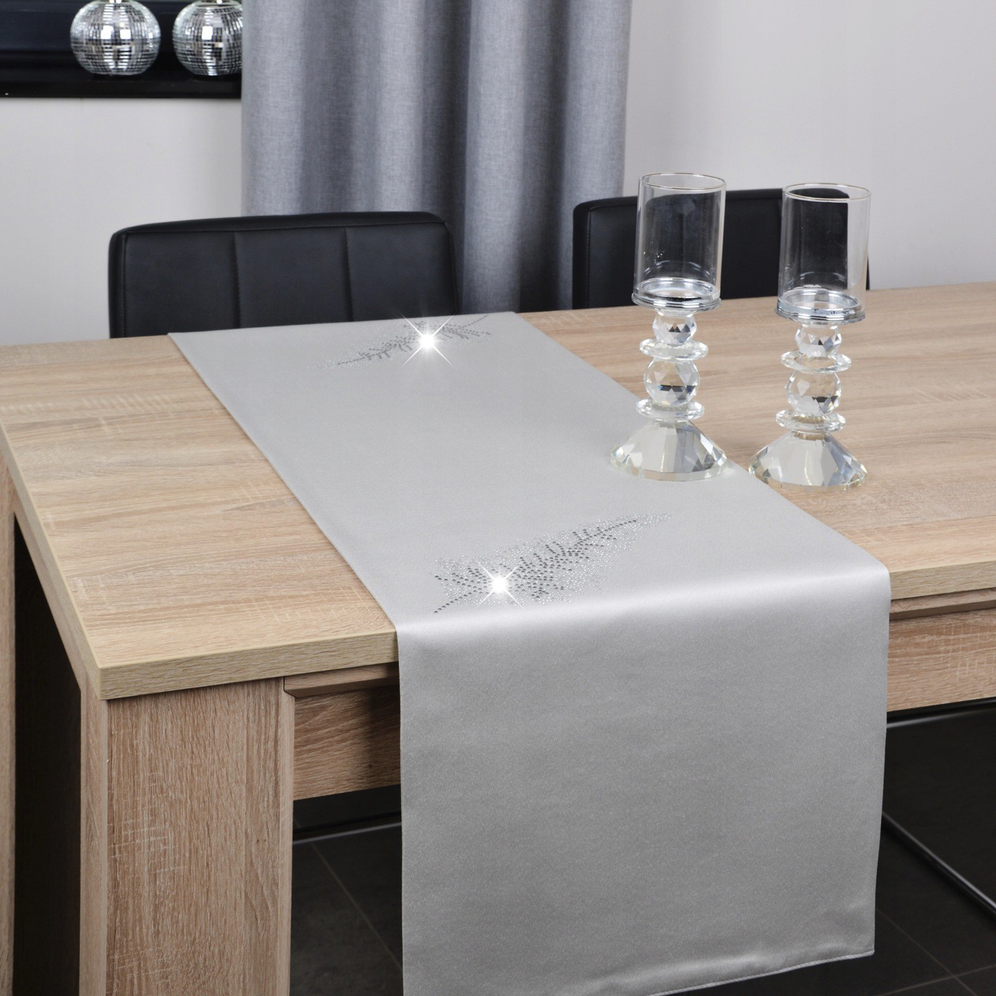 LIŚĆ to wyjątkowa kolekcja atłasowych bieżników wykonanych z podwójnie złożonego materiału, na obu brzegach ozdobione są nowoczesnym wzorem wykonanym ze szklanych kryształków. Bieżniki dostępne są w wielu kolorach oraz rozmiarach, dlatego dopasowanie nie będzie stanowiło problemu. Z kolekcji LIŚĆ proponujemy również inne produkty, jak poszewki, czy podkładki dostępne na naszych aukcjach.