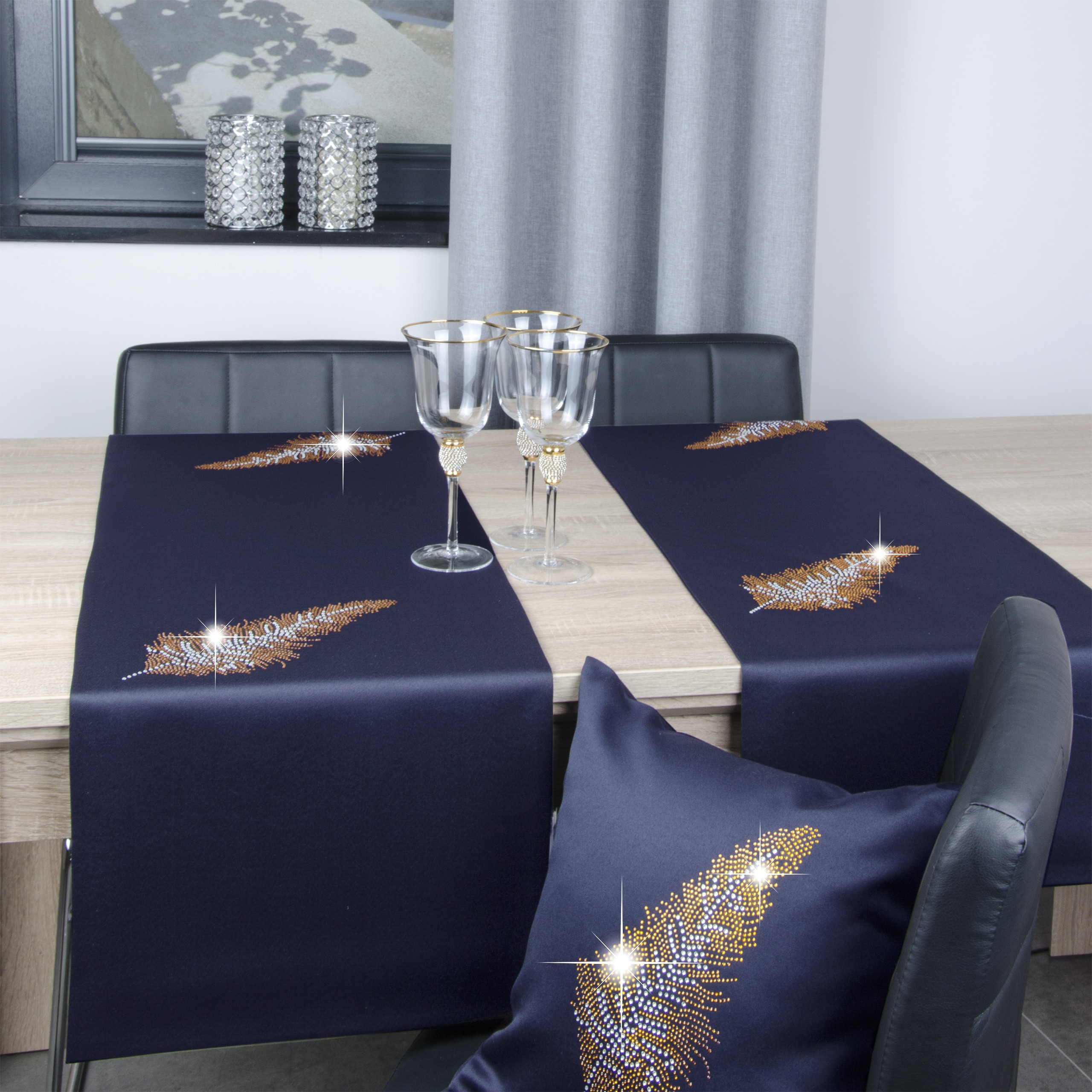 LIŚĆ to wyjątkowa kolekcja atłasowych bieżników wykonanych z podwójnie złożonego materiału, na obu brzegach ozdobione są nowoczesnym wzorem wykonanym ze szklanych kryształków. Bieżniki dostępne są w wielu kolorach oraz rozmiarach, dlatego dopasowanie nie będzie stanowiło problemu. Z kolekcji LIŚĆ proponujemy również inne produkty, jak poszewki, czy podkładki dostępne na naszych aukcjach.