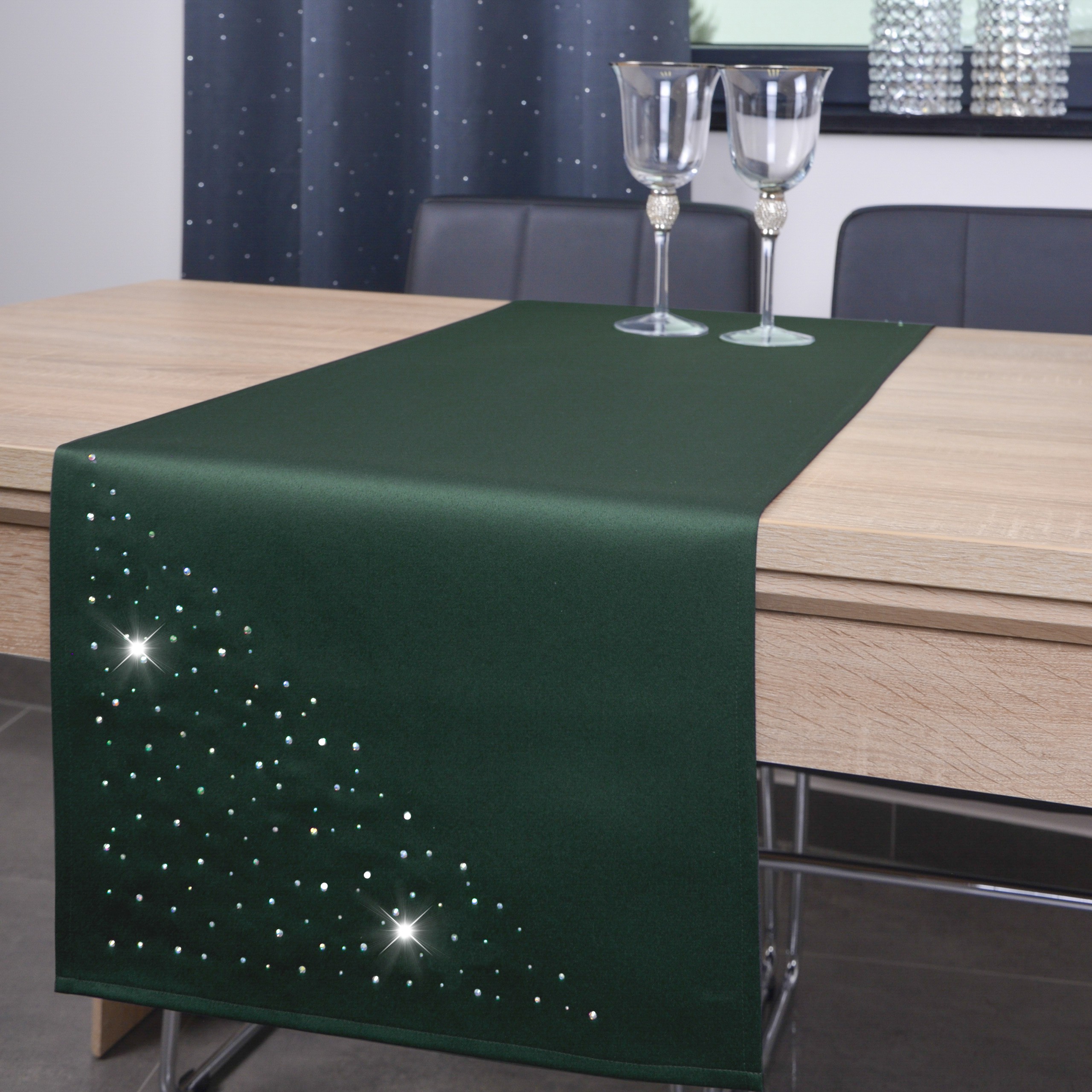 KRYSTAL to wyjątkowa kolekcja atłasowych bieżników, które wykończone są estetycznym podłożeniem na 1 cm oraz ozdobione są nowoczesnym wzorem, wykonanym ze szklanych kryształków, odpowiednio dobranych kolorystycznie. Bieżniki dostępne są w wielu kolorach oraz rozmiarach, dlatego dopasowanie nie będzie stanowiło problemu.