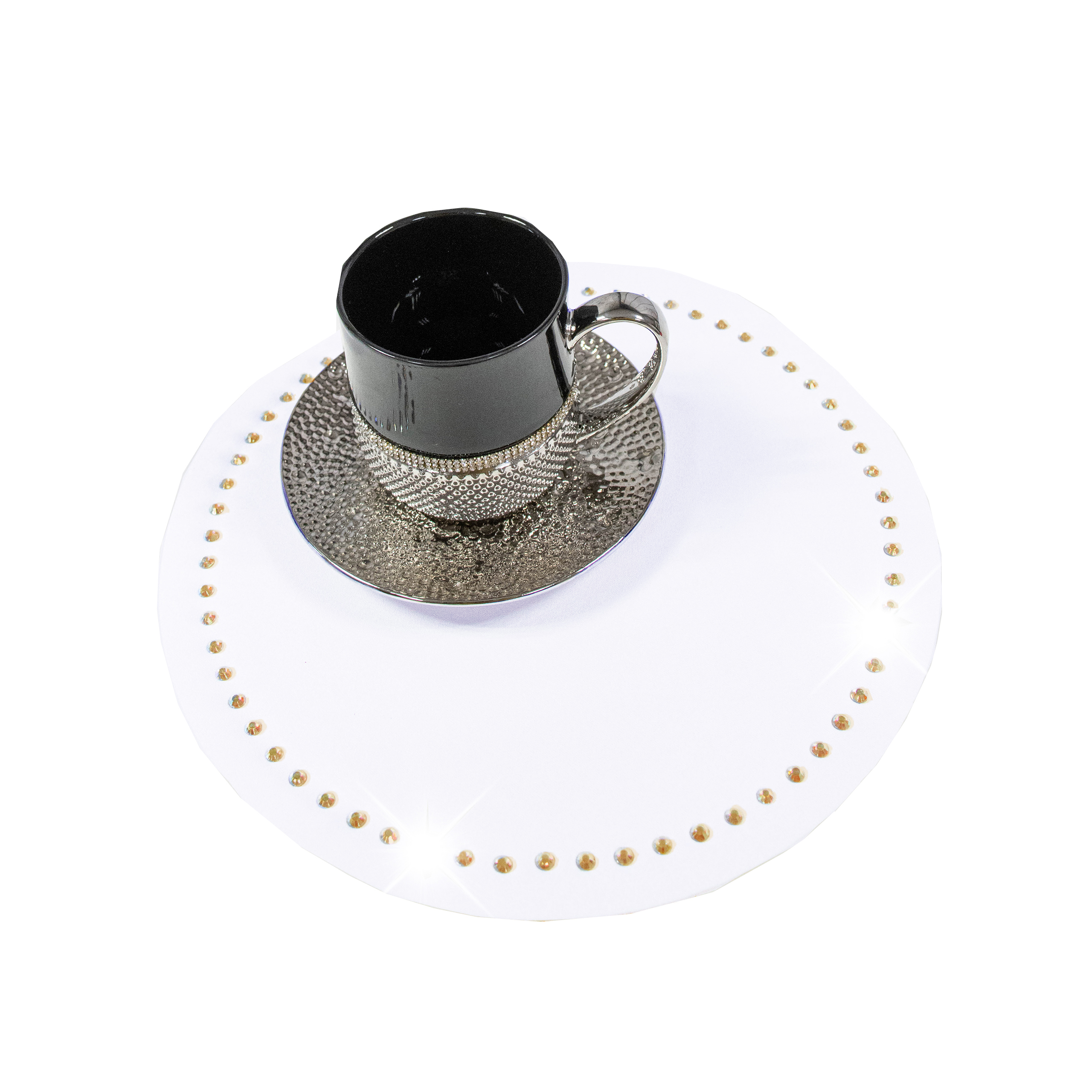 Bądź pierwszy i napisz opinię “Podkładka Glamour 30 cm Koło – Biała + Złote dżety” Anuluj pisanie odpowiedzi
