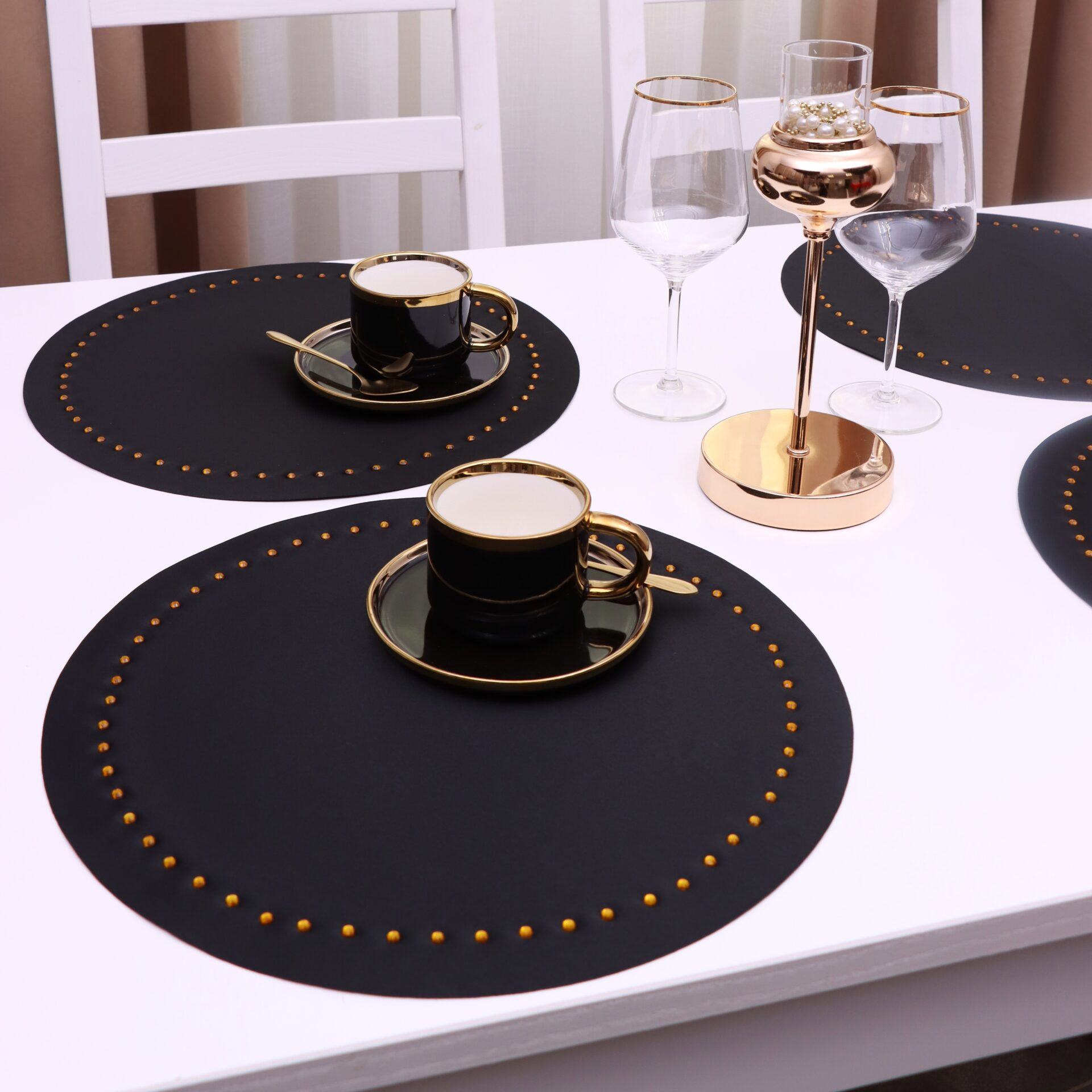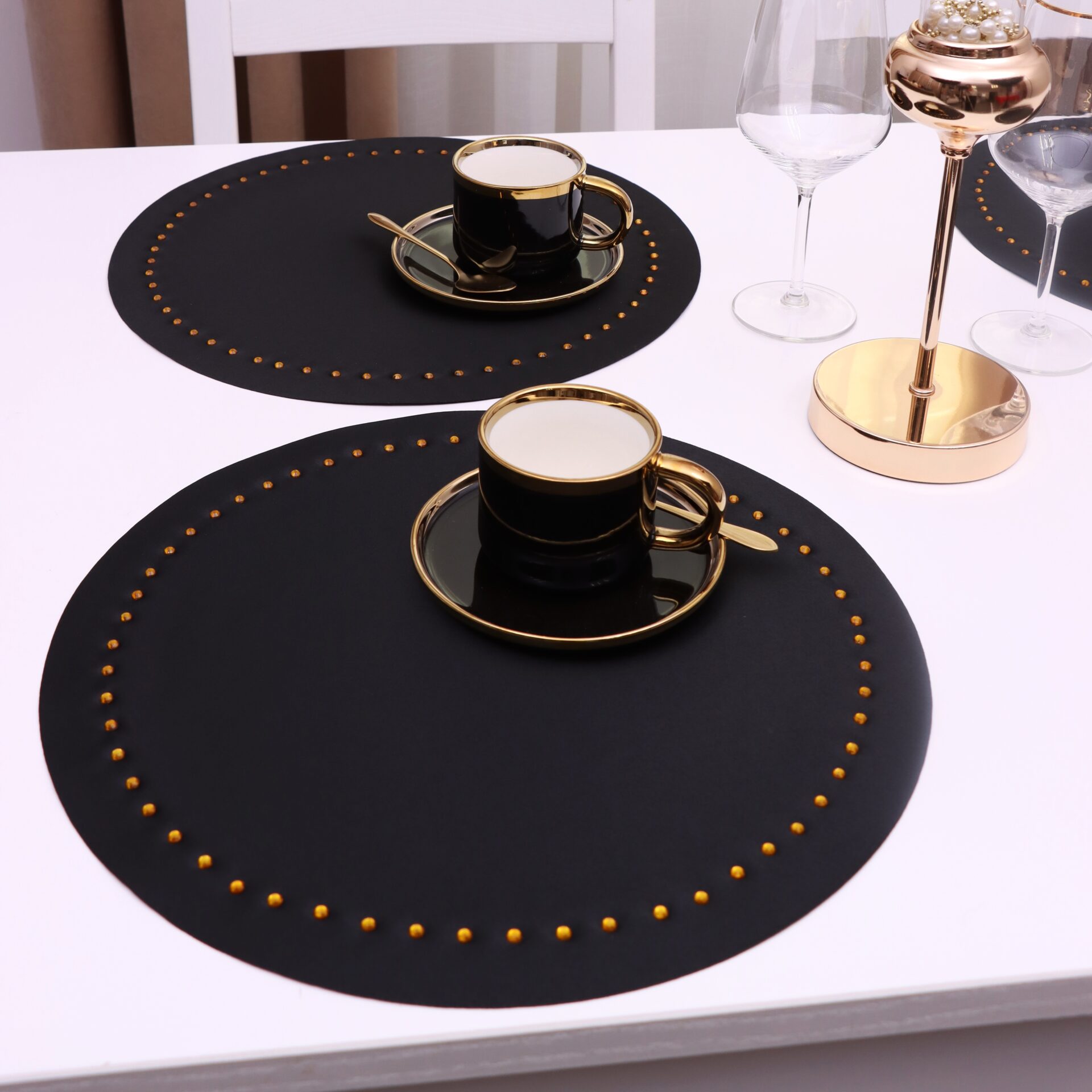 Podkładka Glamour Koło – Czarna + Złote dżety
