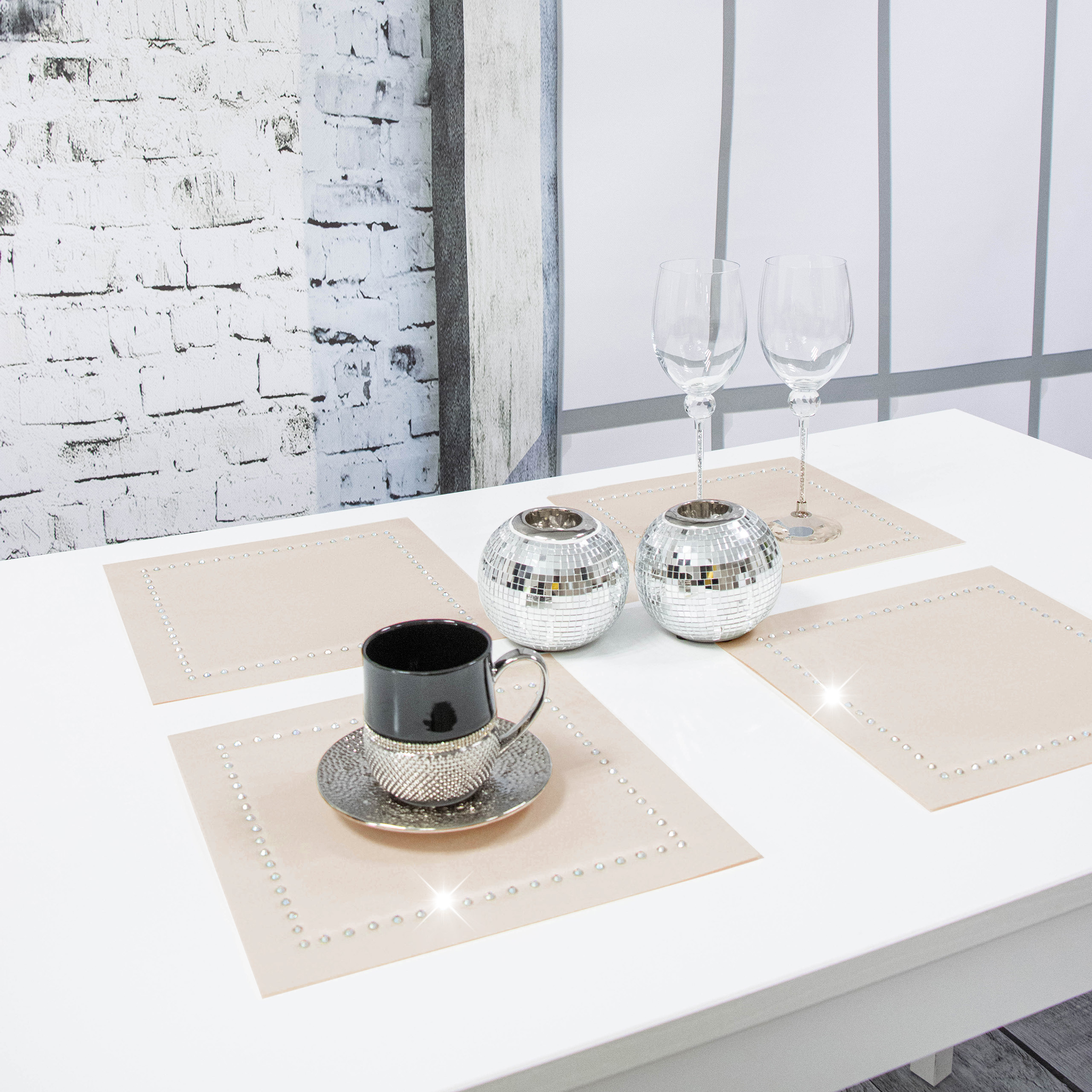 Podkładka Glamour 30×30 – Beż + Srebrne dżety