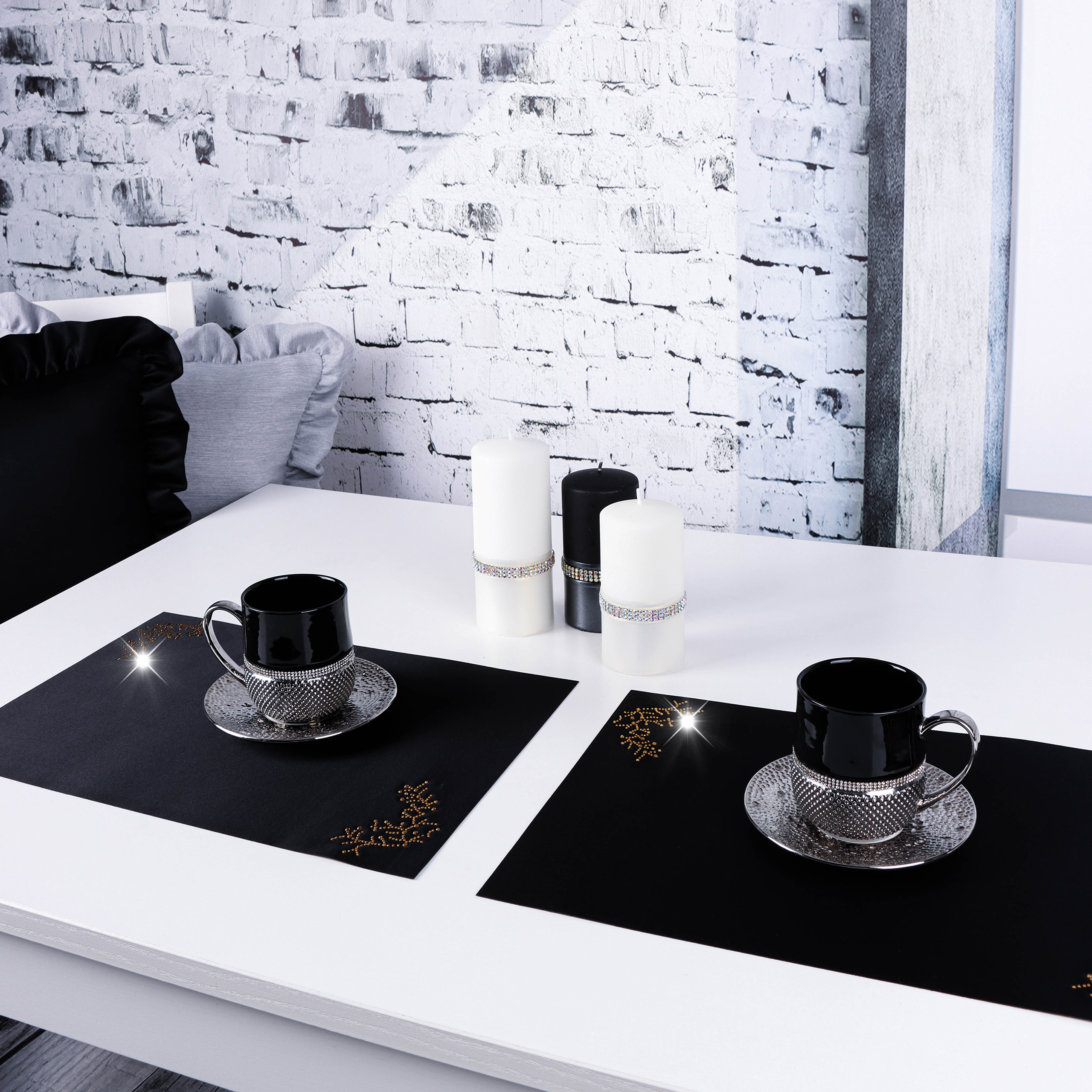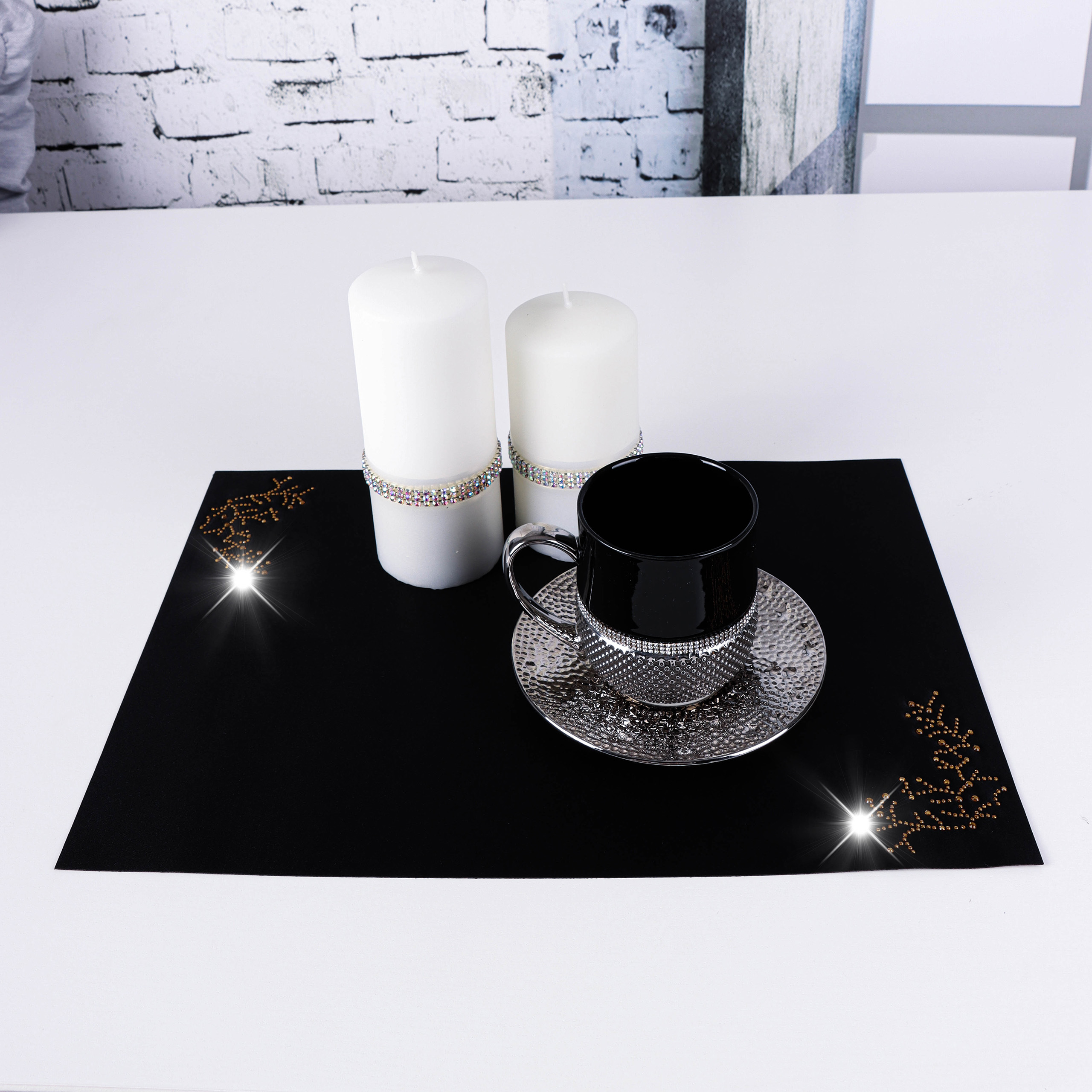 PODKŁADKA GLAMOUR Z MOTYWEM DŻETOWYM to wyjątkowa kolekcja atłasowych podkładek wykonanych z dwóch warstw wysokogatunkowej tkaniny poliestrowej, sklejonej i usztywnionej od środka. Na jednym z brzegów ozdobione są nowoczesnym wzorem wykonanym z dżetów. Dostępne są w wielu kolorach dlatego dopasowanie nie będzie stanowiło problemu. Podkładki pakowane są po 1 sztuki w foliową torebkę.