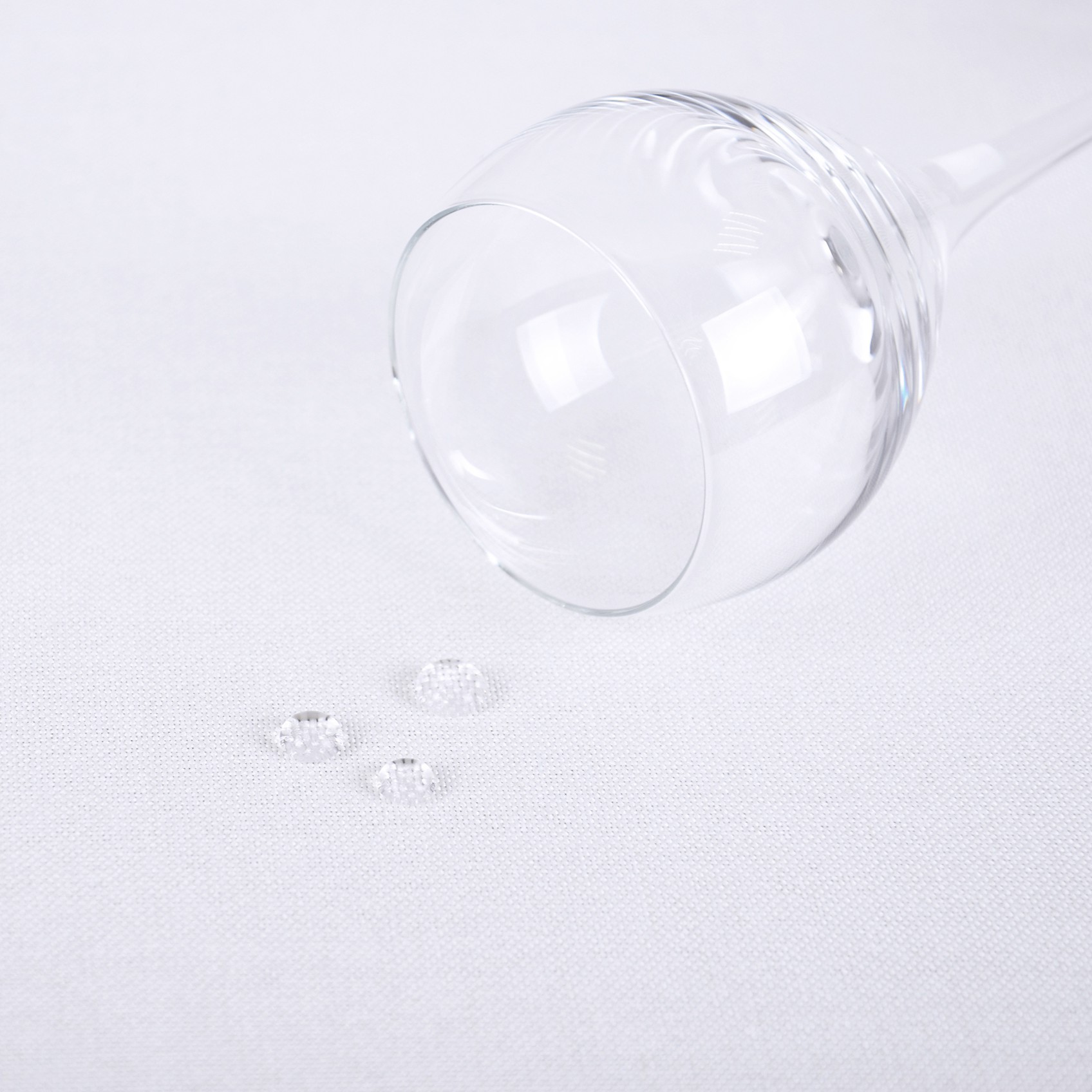 Tkanina pokryta jest powłoką plamoodporną, co zabezpiecza przed wchłanianiem płynów i chroni przed zabrudzeniami.