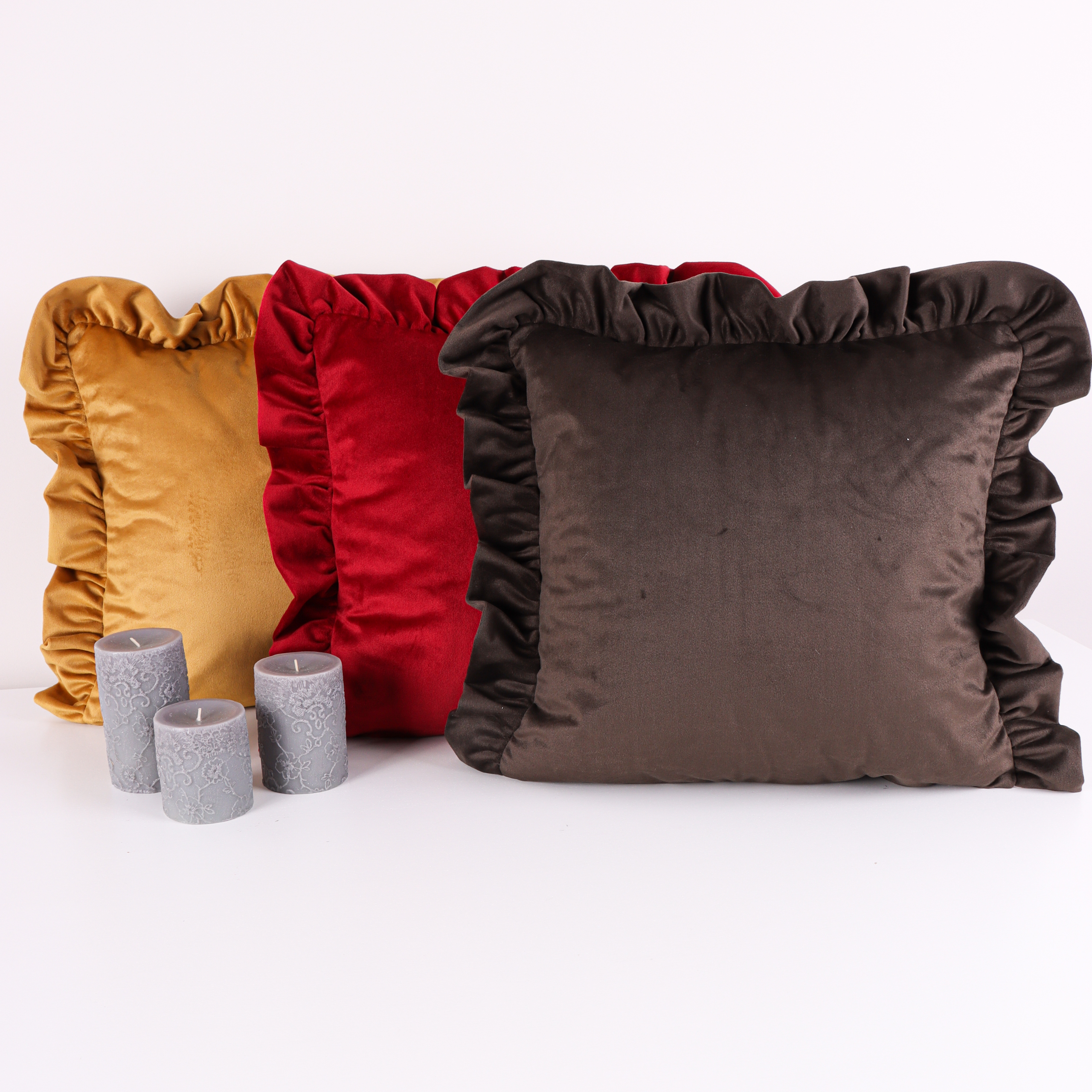 Poszewka welwetowa z falbanką – Bordo