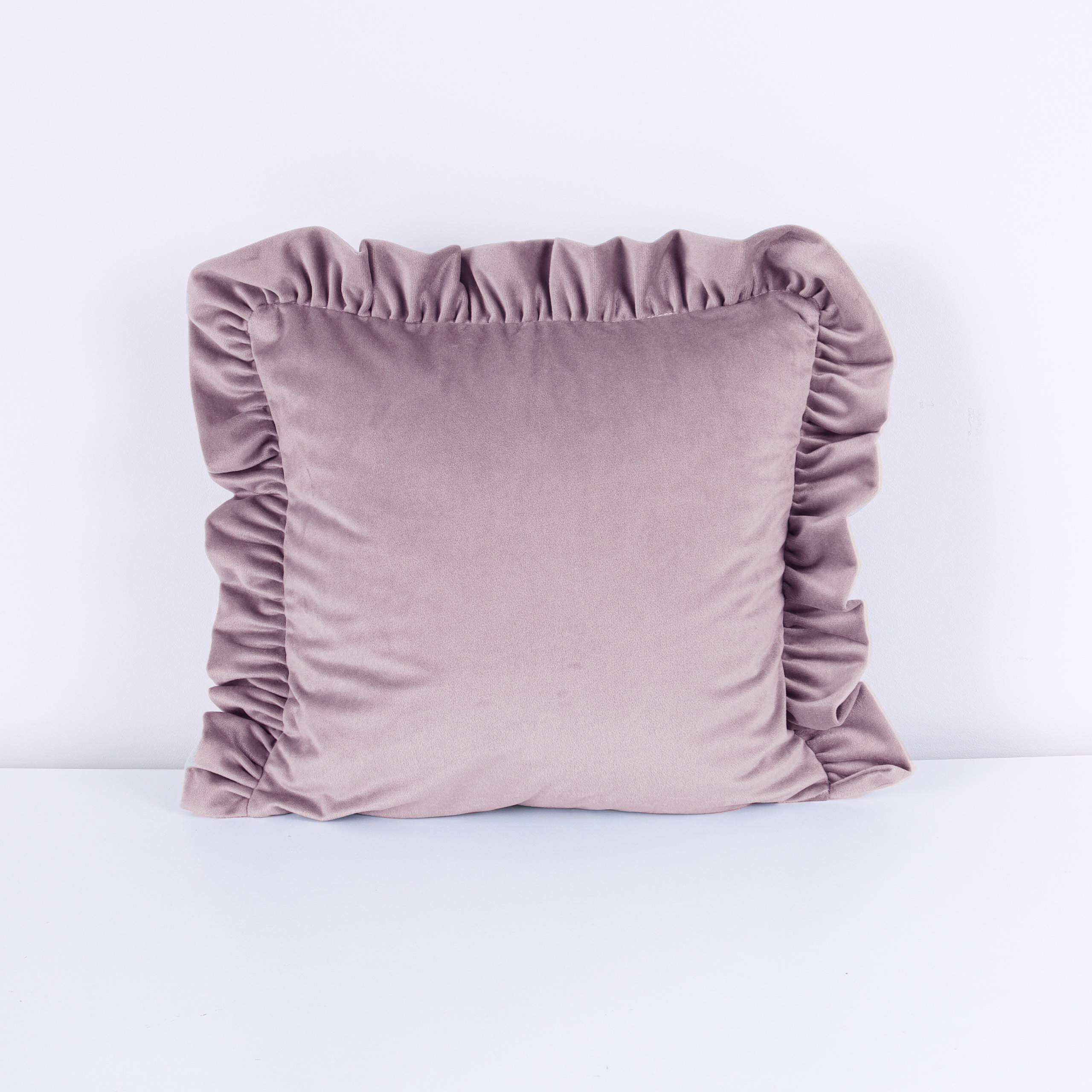 Poszewka welwetowa z falbanką – Pudrowy róż